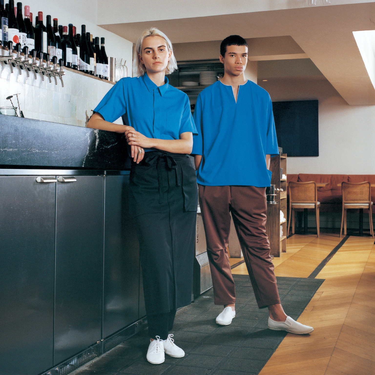 「HAKUÏ 29」は、セピア&ブルーが彩る シネマティックな飲食店向けユニフォーム。