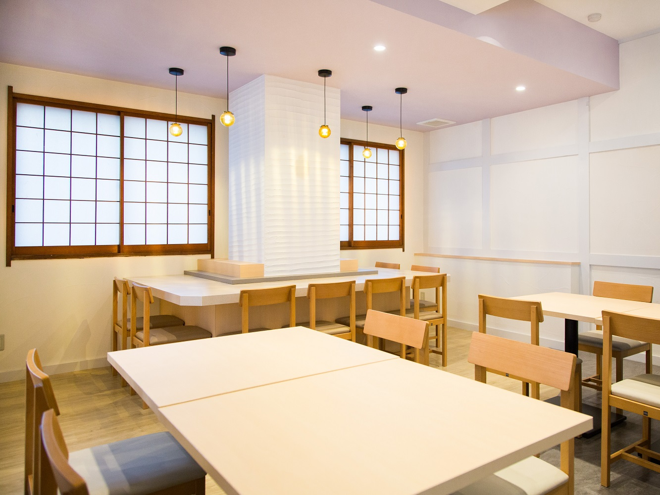 和やかな印象を受ける内装。実は、柱や机、椅子の一部は以前この場所で親しまれていたお蕎麦屋さんのものを使用しているのだそうです。この地域や商店街をもっと元気にしたい、と常々思っていたサカガミが元オーナーさんからこの場所と思いを受け継いだそうです。