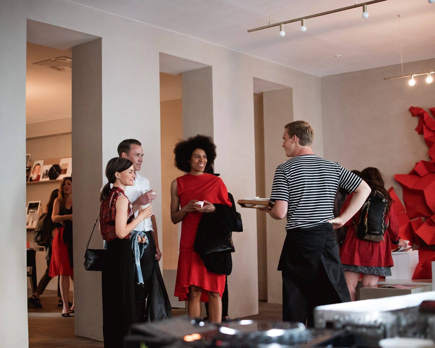 このたび6月4日に開催された、デンマーク・コペンハーゲンの「KINFOLK」新オフィスのオープニングパーティーに、セブンユニフォームブランドのファーストラインであり、小野塚秋良氏デザインのワーキングユニフォーム「HAKUÏ(ハクイ)」が、出版業界関係者やアーティストなど、各界からのゲストを迎えるスタッフのユニフォームとして活躍しました。「かねてよりHAKUÏのファンだった」というKINFOLKスタジオマネージャー・Monique Blume様より、是非パーティーで着用したいとのオファーをいただき、ライフスタイル誌「KINFOLK」の編集スタイルやコンセプトに共感した弊社からユニフォームを提供させていただきました。