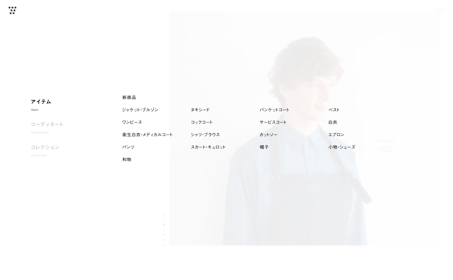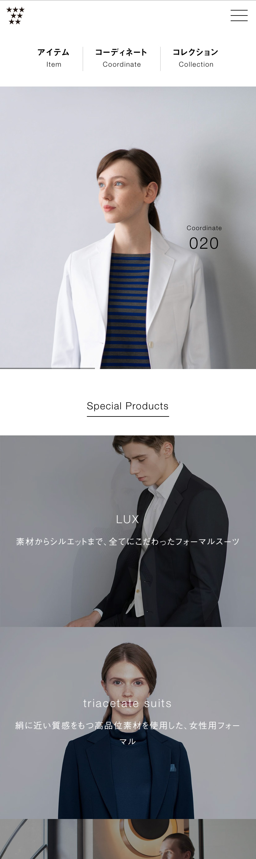 「コレクション」のコーナーでは、職種や機能、素材によってブランド・シリーズ化された商品群を、モデル着用のビジュアルイメージでご覧いただける、プレゼンテーションのコーナーです。