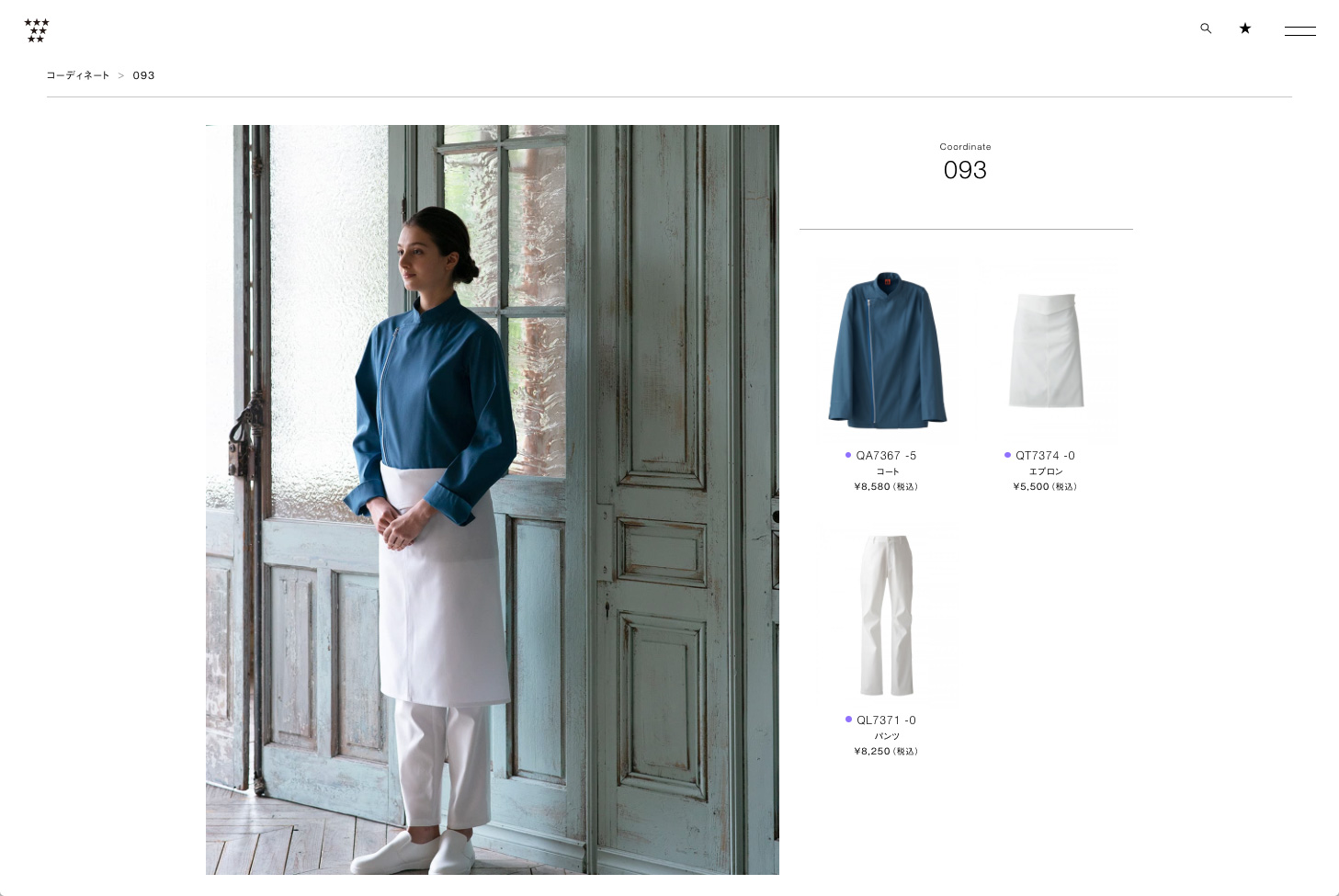 「コーディネート」のコーナーでは、服種ごとに分類したモデル着用イメージビジュアルの一覧からユニフォームを探していただけます。