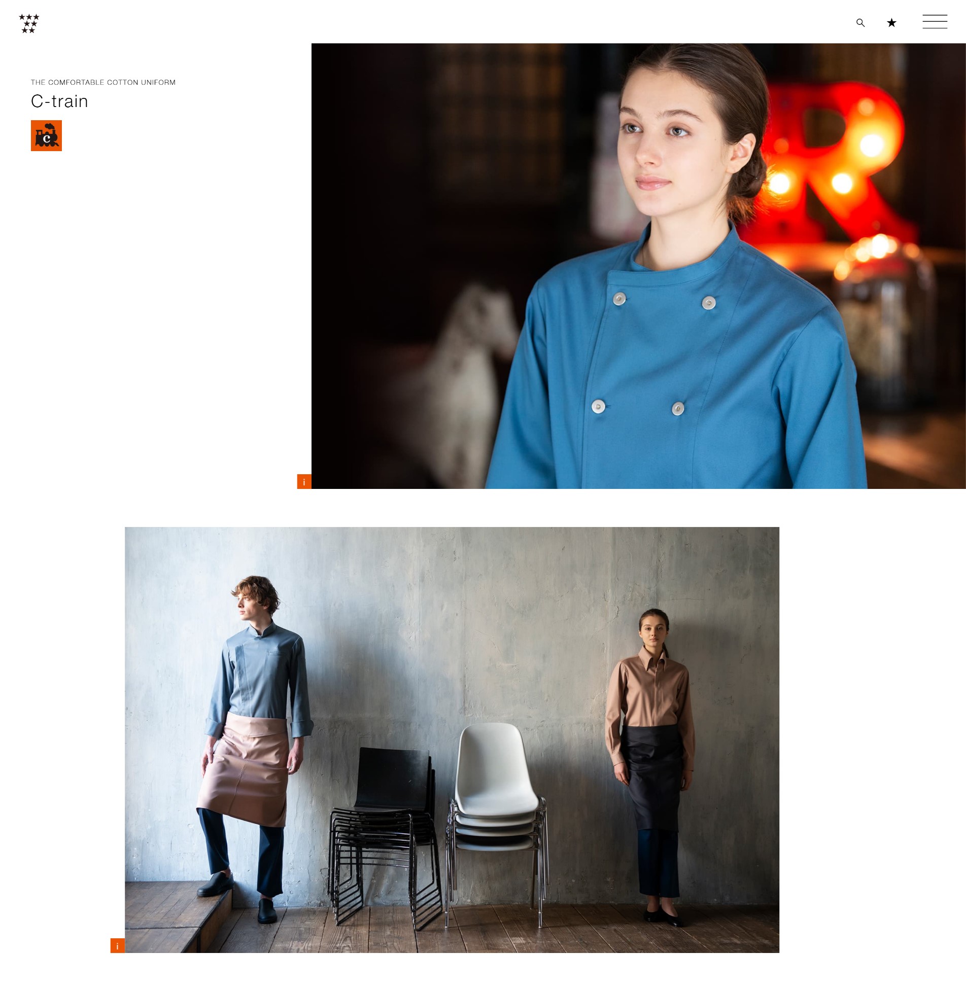 厳選素材と高度かつ繊細な縫製技術で仕立てた、最上級の“おもてなし”のためのホスピタリティースーツブランド「LUX(リュクス)」や、ホテル向けのオーダーメイドユニフォーム、100%天然素材のコットンに機能性と着心地を追求したブランド「C-train(シートレイン)」など、お客様の用途やこだわりから商品を探していただけます。