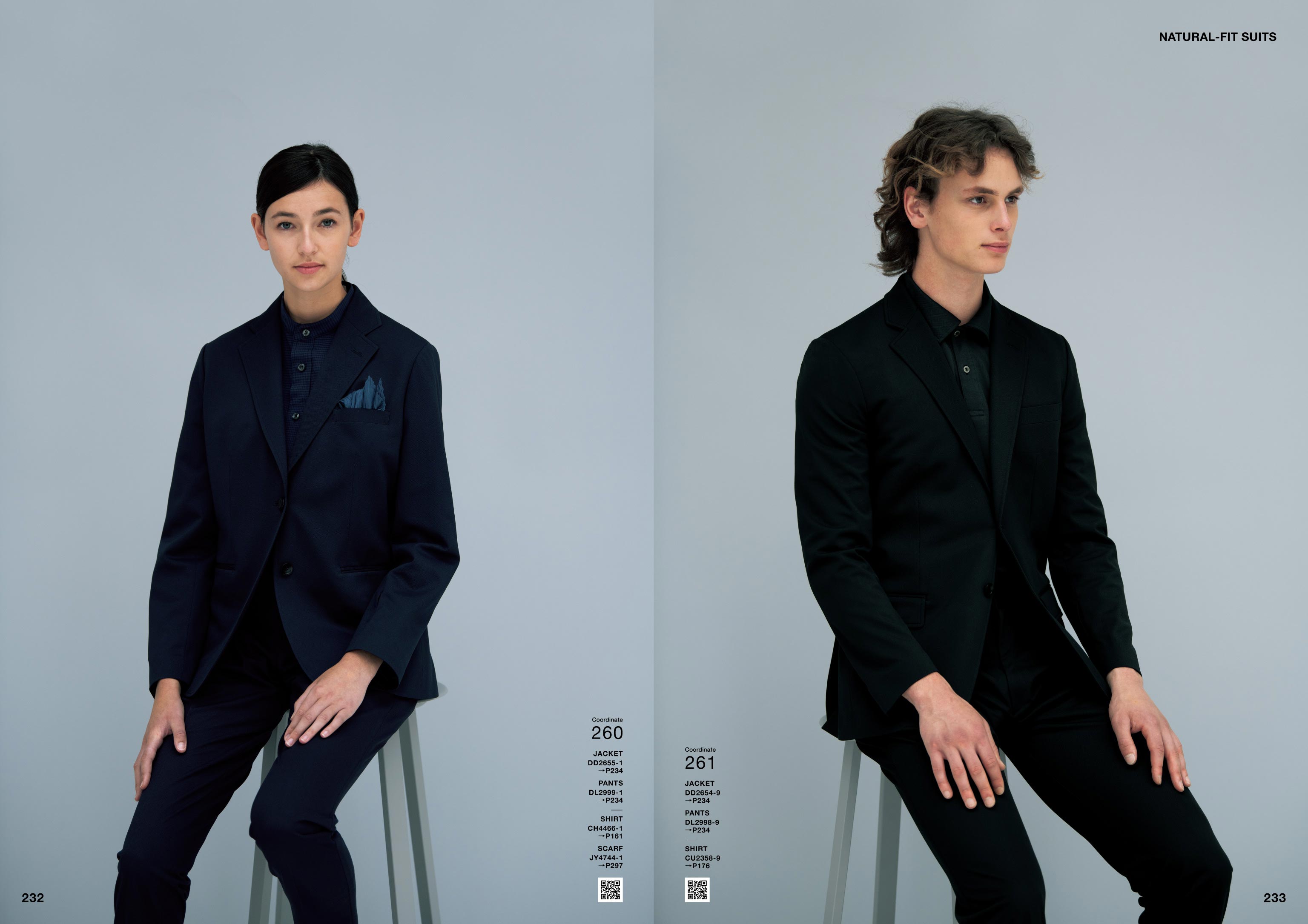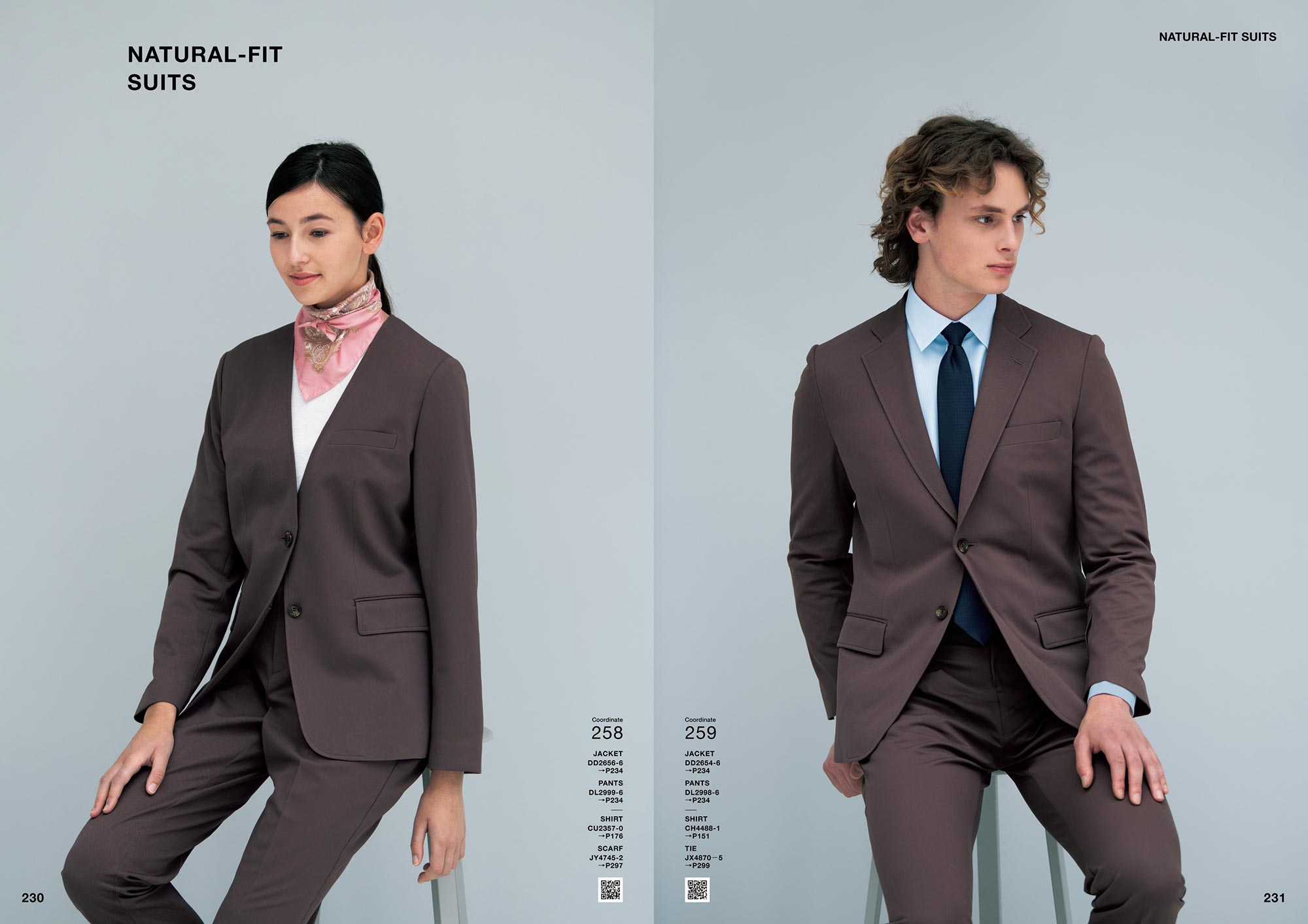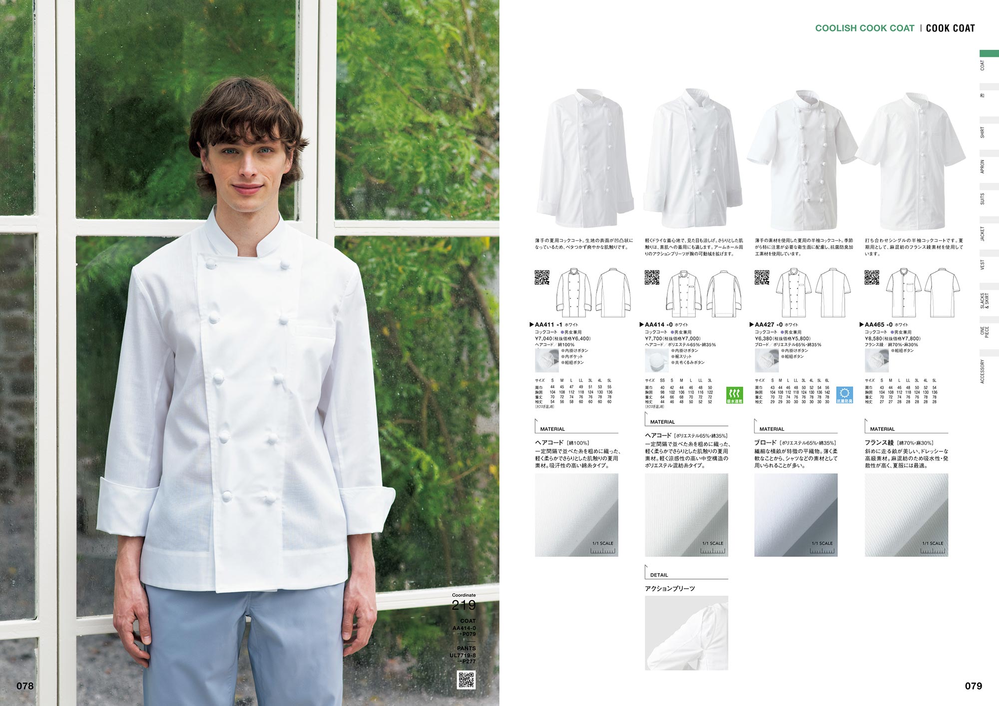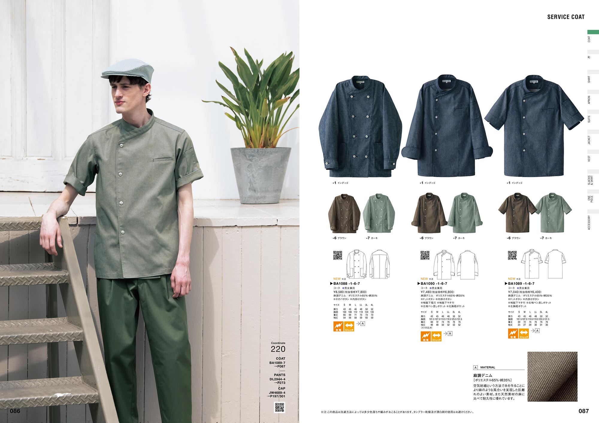 それぞれのコーディネート写真のQRコードから「Webカタログ」へアクセスしていただくと、各着用商品の詳細な情報を簡単にご覧いただけます。新しい施設や店舗でのユニフォームイメージの検討資料としてご活用ください。