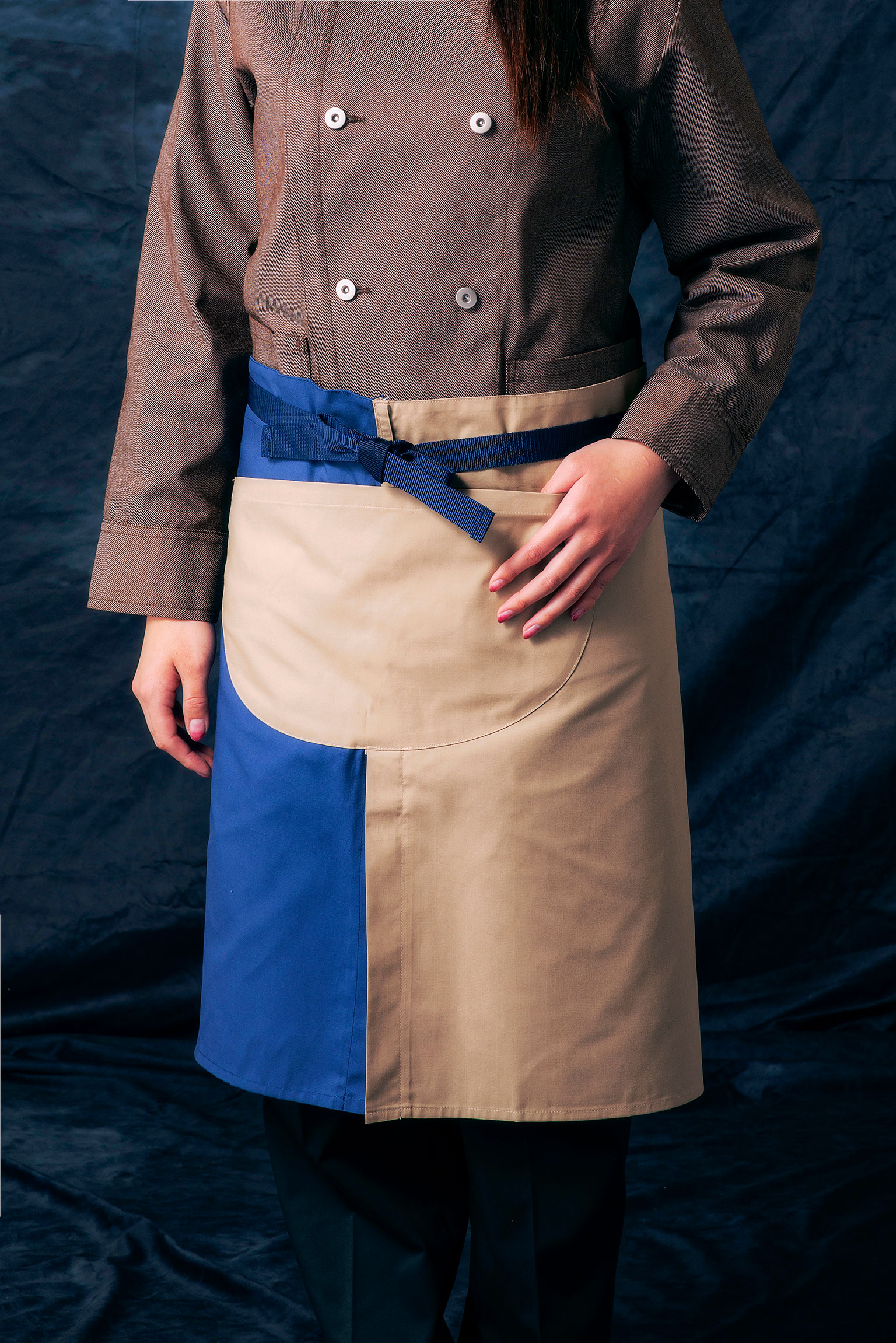 - エプロンは、形の違いによって担当エリアの区別をできるようにしたところ