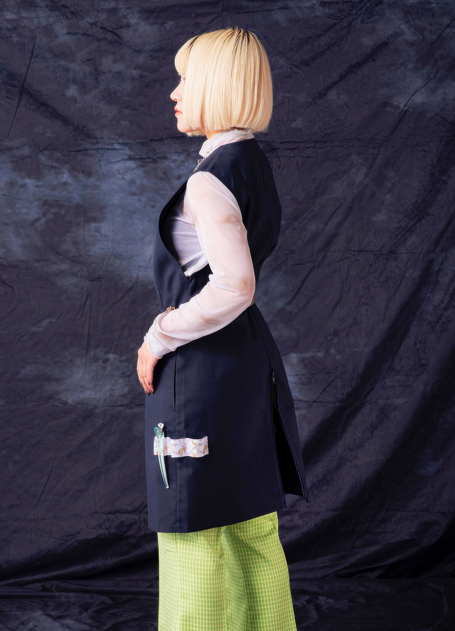 - ベストの丈を短く加工し、動きやすく作業がしやすいようにしたところ