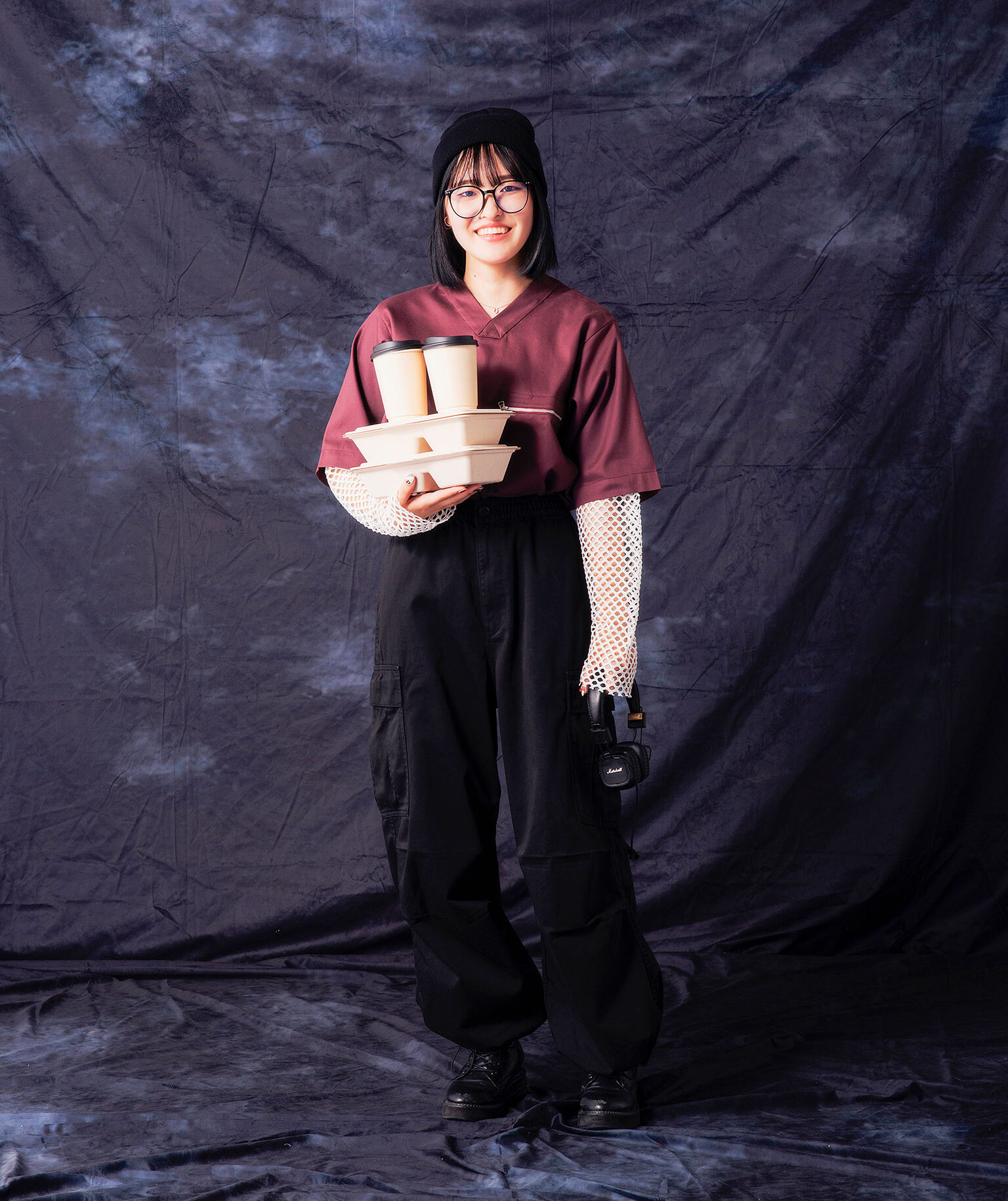 - あくまでもユニフォームなので、あまり私服感を出さないようにコーディネートをしました。