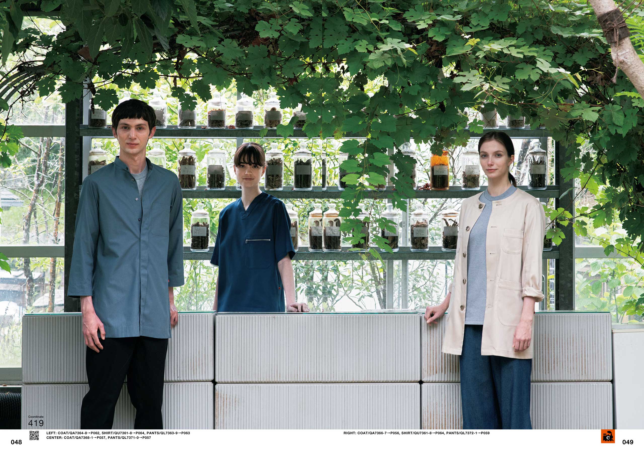 今回はブランドイメージの舞台として、世界的な注目を浴びる“クラフト蒸留酒”で有名な「mitosaya薬草園蒸留所」の元薬草園の作業場にて撮影。落ち着きのあるナチュラルな色展開のユニフォームと緑あふれる美しい薬草園蒸留所の風景が調和し、ブランドコンセプトを演出しています。空間とユニフォームが調和するイメージをお楽しみください。