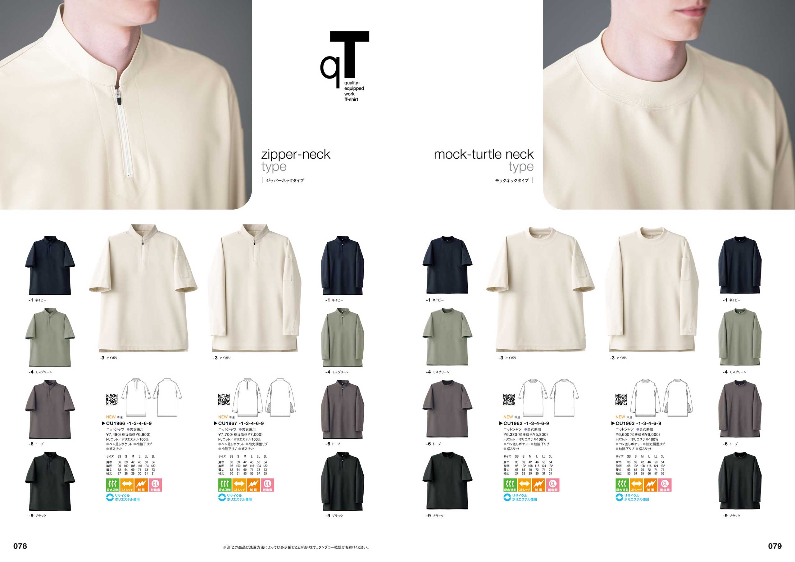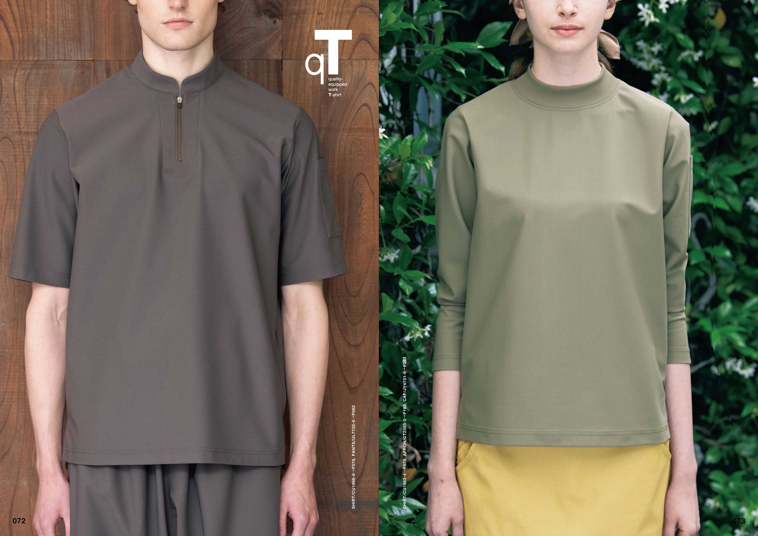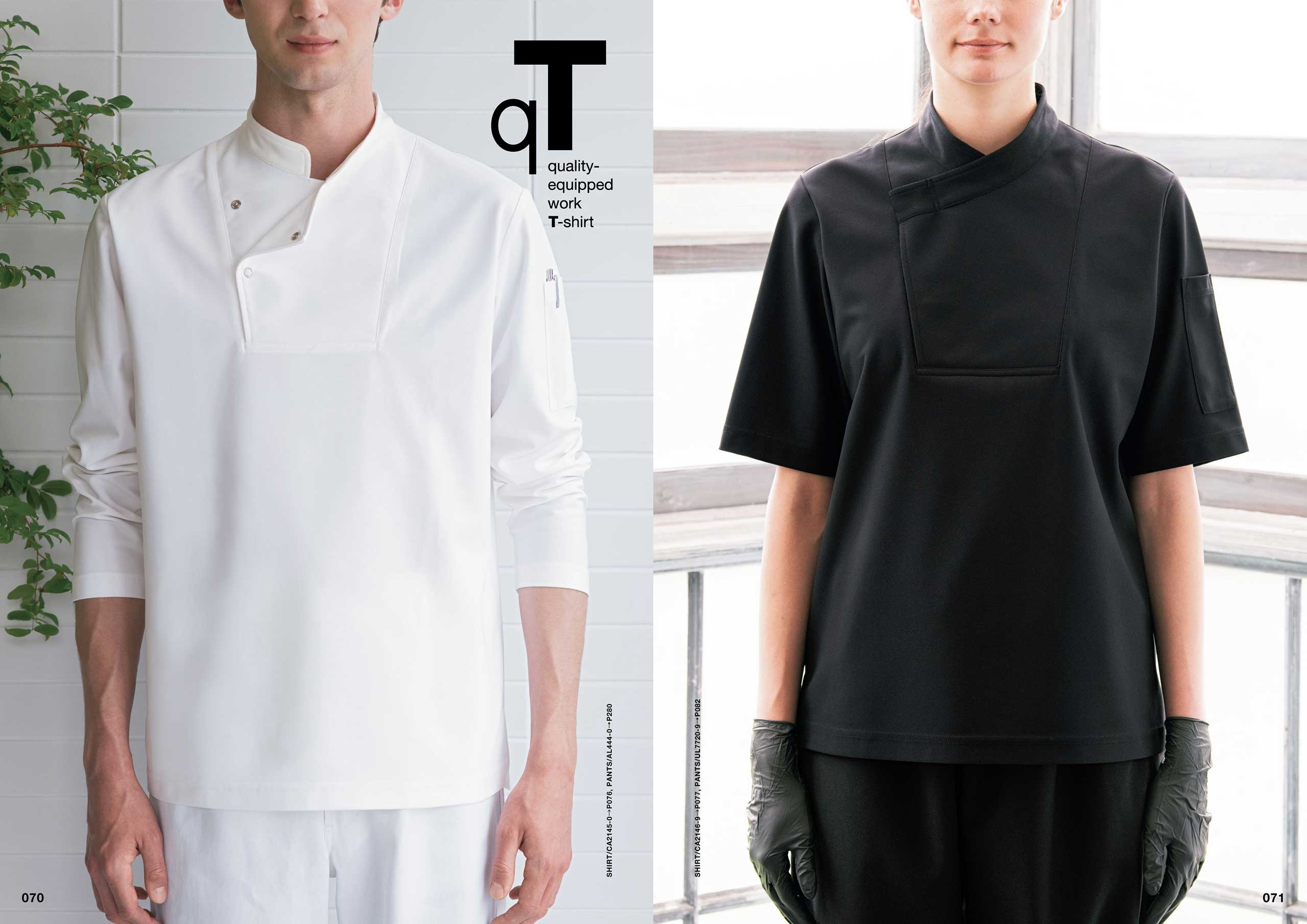 新製品「qT/quality-equipped work T-shirt」シリーズは、Tシャツが持っているシンプルで手軽なカジュアル感を活かしつつ、ホテル等で必要とされる、質の高いおもてなしに対応できる品格と清潔感を持ち、それ単体でもユニフォームとして成立するシャツをコンセプトとしてデザイン。サイズ感や生地にもこだわり、ユニフォームクオリティで最良の着心地と機能性を備えた、新しいTシャツシリーズとなりました。