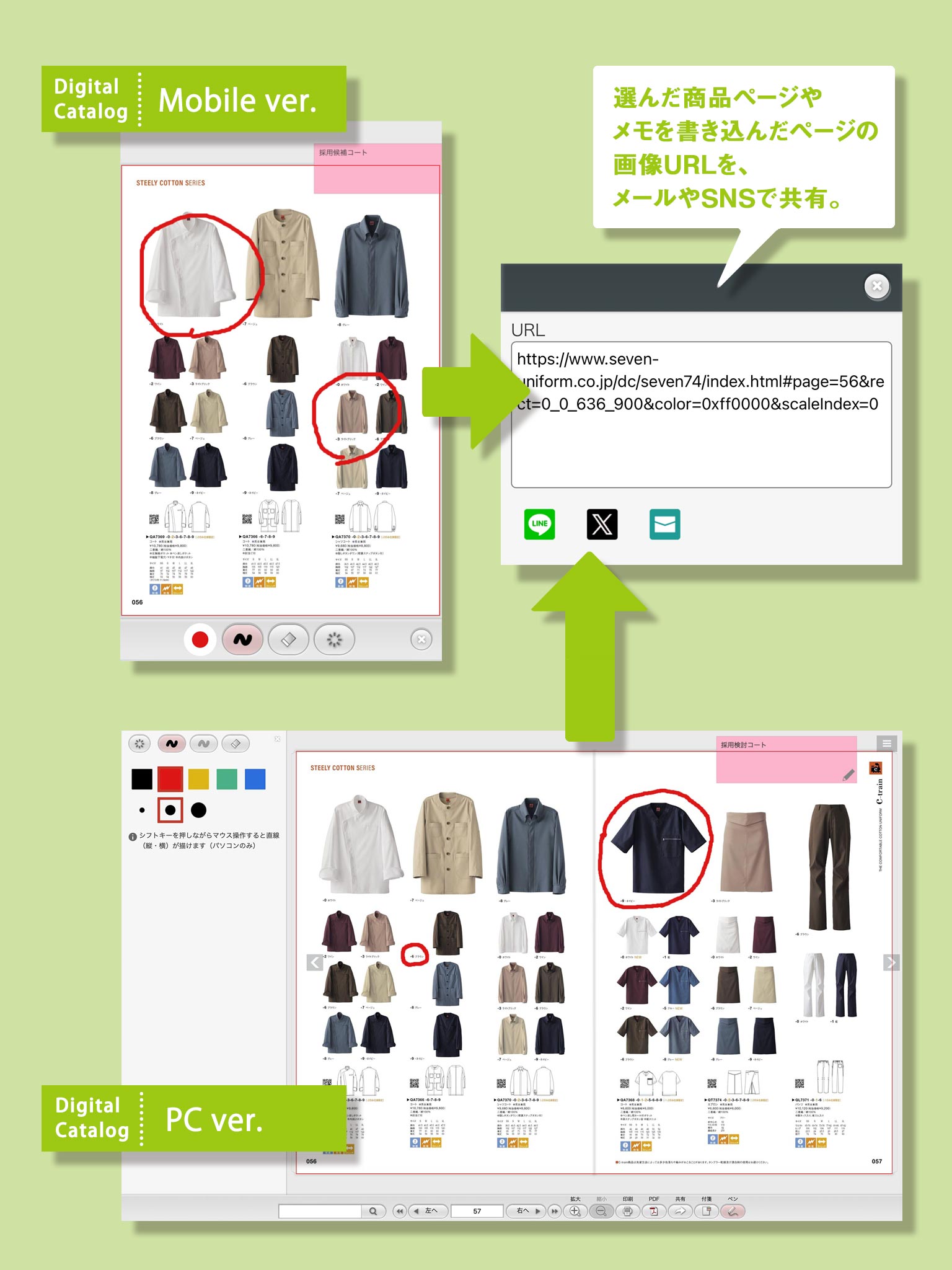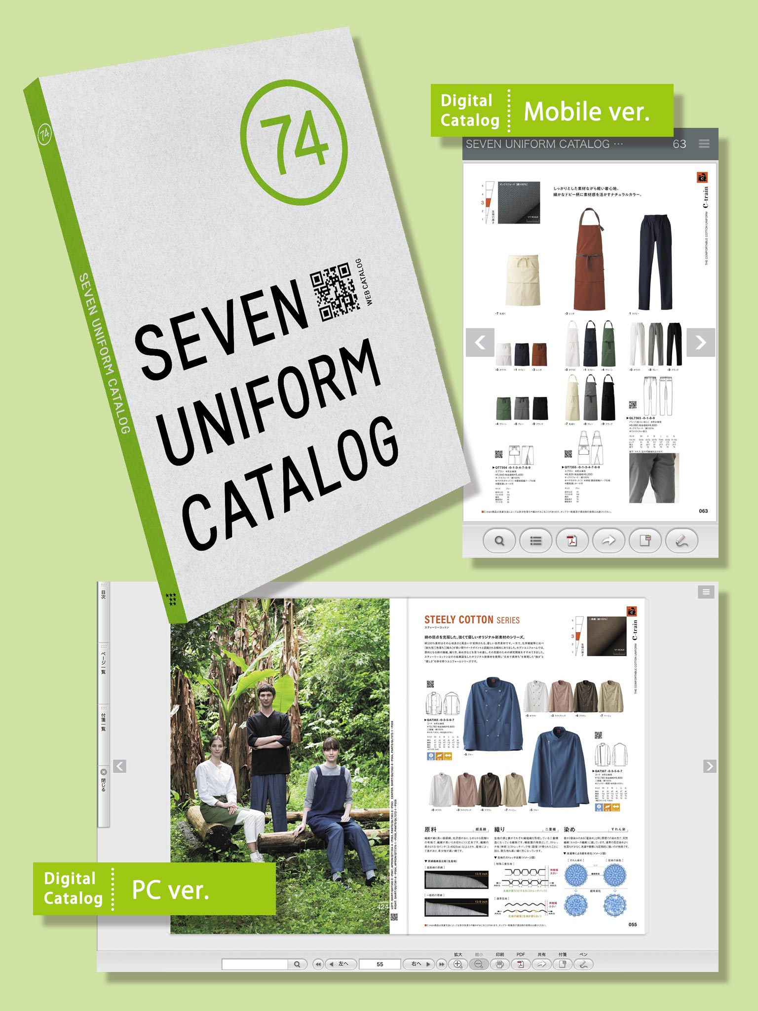 ユニフォームの商品情報はもちろん、飲食・サービス業界の現在をさまざまな角度から俯瞰できる『SEVEN UNIFORM CATALOG 74』。オフラインでも商品をじっくり比較検討できる、従来の紙本の最新カタログをご希望の場合は下記の請求フォーム、もしくは最寄りのセブンユニフォーム販売店にご請求ください。