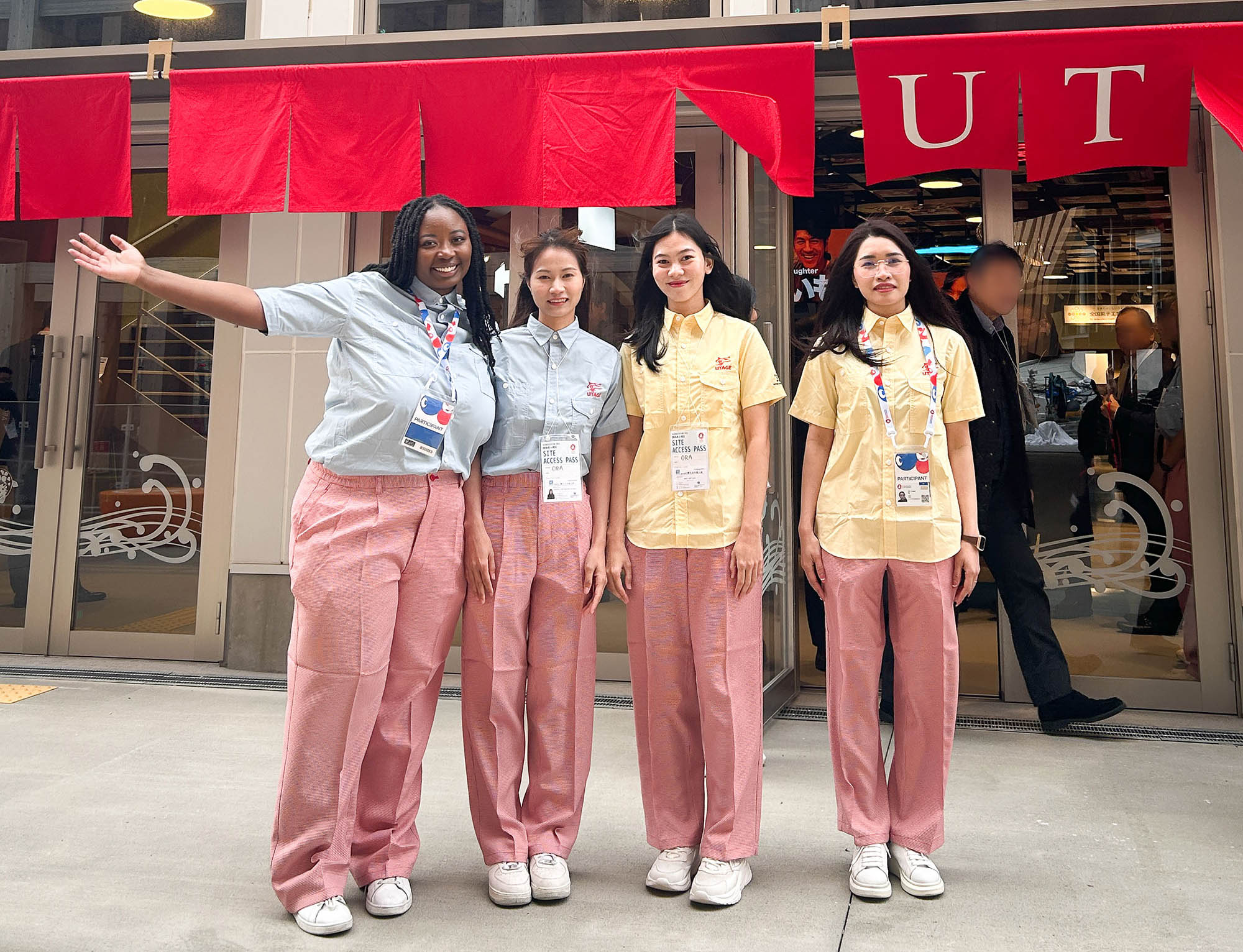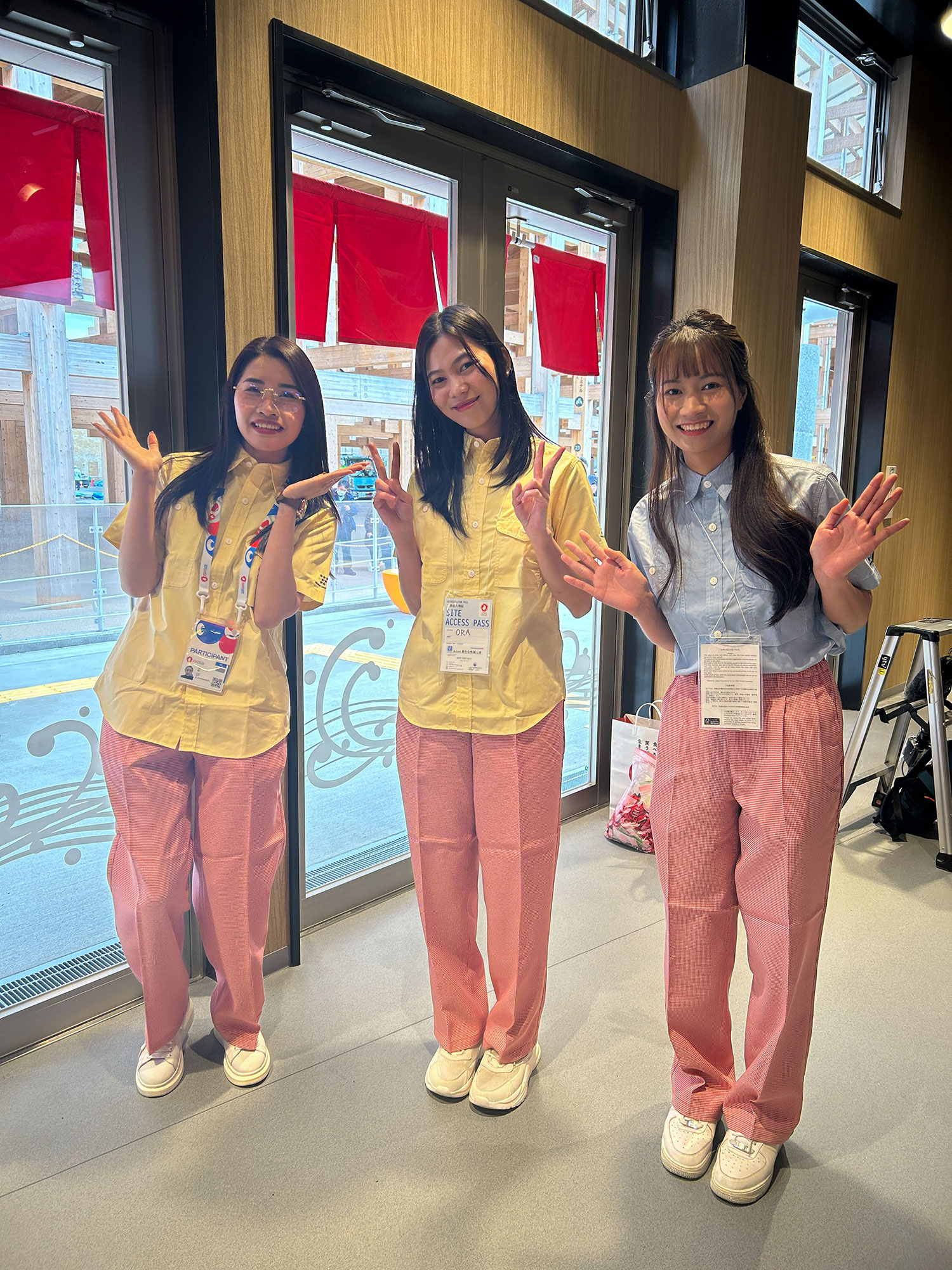 このパビリオンでは食の楽しさを創造する「新・天下の台所」をコンセプトに、日本の食文化を世界に発信します。食材がたくさん積まれた立体的な宝船と真っ赤なのれんが目を引く外観が特徴で、弊社が手がけたユニフォームがそこに花を添えます。