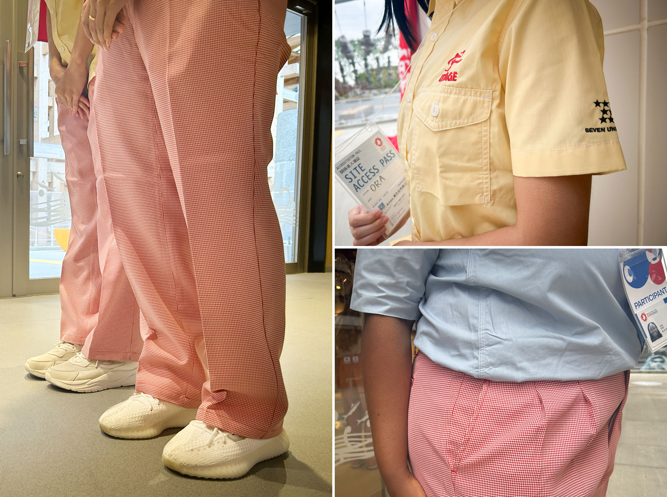 「デザイナーさんの想いが詰まったこのデザインや色味が好きなので、私は寒い日でも許可されている長袖インナーは着ないつもりです。スカーフの巻き方を含め、各自が考え判断できるのは個人が尊重されていますね。」(ベトナム出身スタッフ)