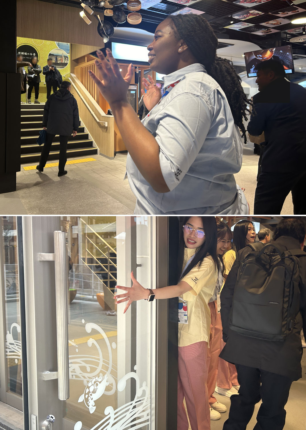 「私は今はインターン生の目印であるブルーシャツを着ていますが、このトレーニング期間を終えるとイエローシャツのリーダーになれます。お客様の要望に合わせて各スタッフが対応します。」(アメリカ出身スタッフ)