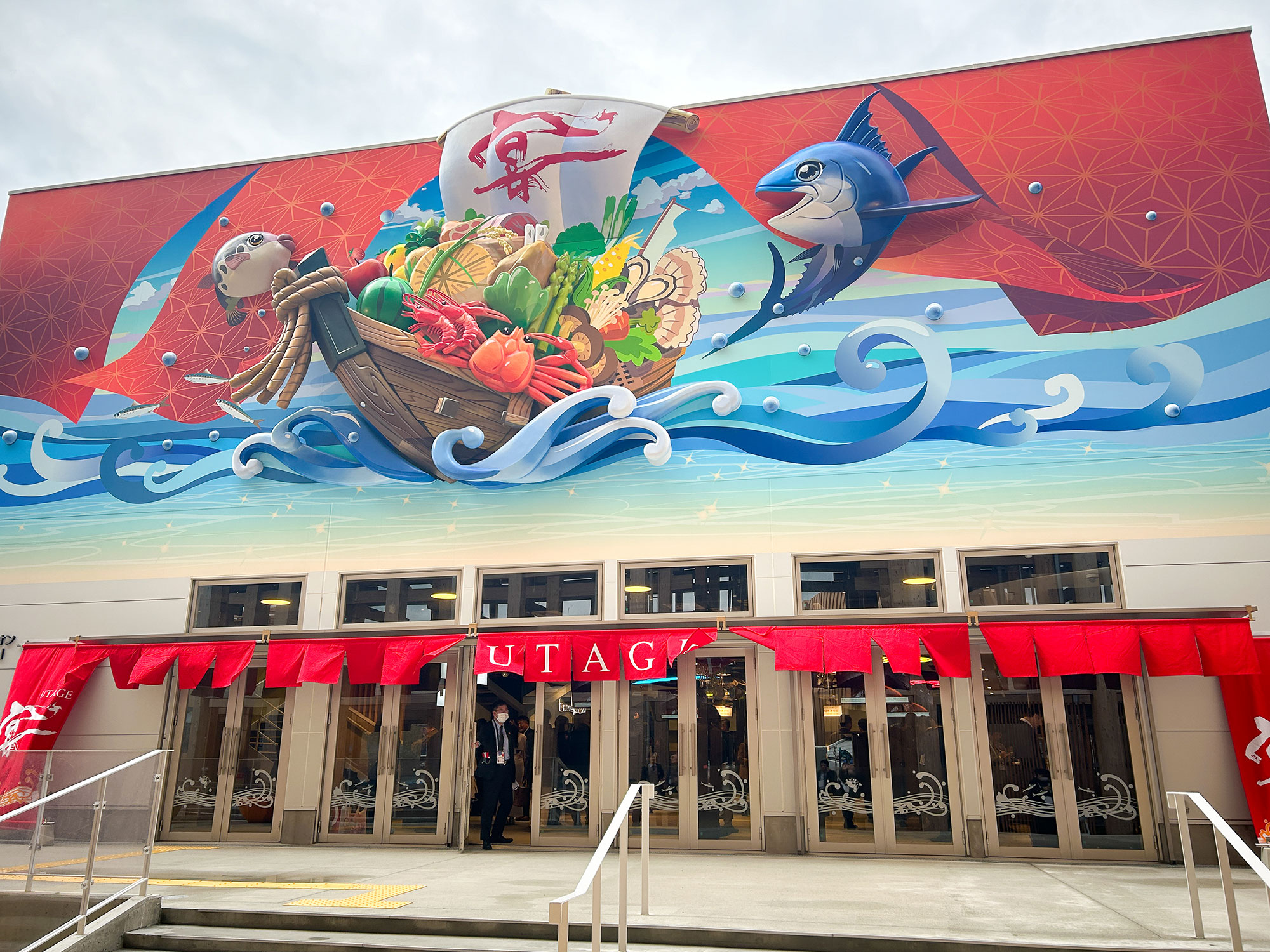 館内1階は道頓堀川をイメージした内装が施され、テイクアウト専用の限定メニューを販売する9つのブースを設置。大豆ミートを使ったお好み焼き風のハンバーガーや世界20カ国以上の料理や食材を使ったおにぎりなどが提供予定です。館内2階はSDGsの一環として食育や体験に特化しており、巻きずしやうどん作りのほか、茶会体験も予定されています。
