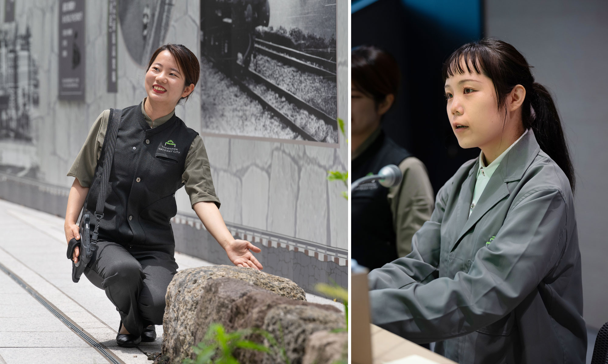 実際に私は、パンプスとスニーカーを日によって使い分けていますが、どちらもコーデに違和感なく馴染みますし、『歩けるユニフォーム』になっている実感があります。お客さまに快適に“街”を体験していただくには、まずキャスト自身が安心して自由に動けることが大切——そんな考え方が、制服の足元にも表れていると感じます。」(女性キャスト)