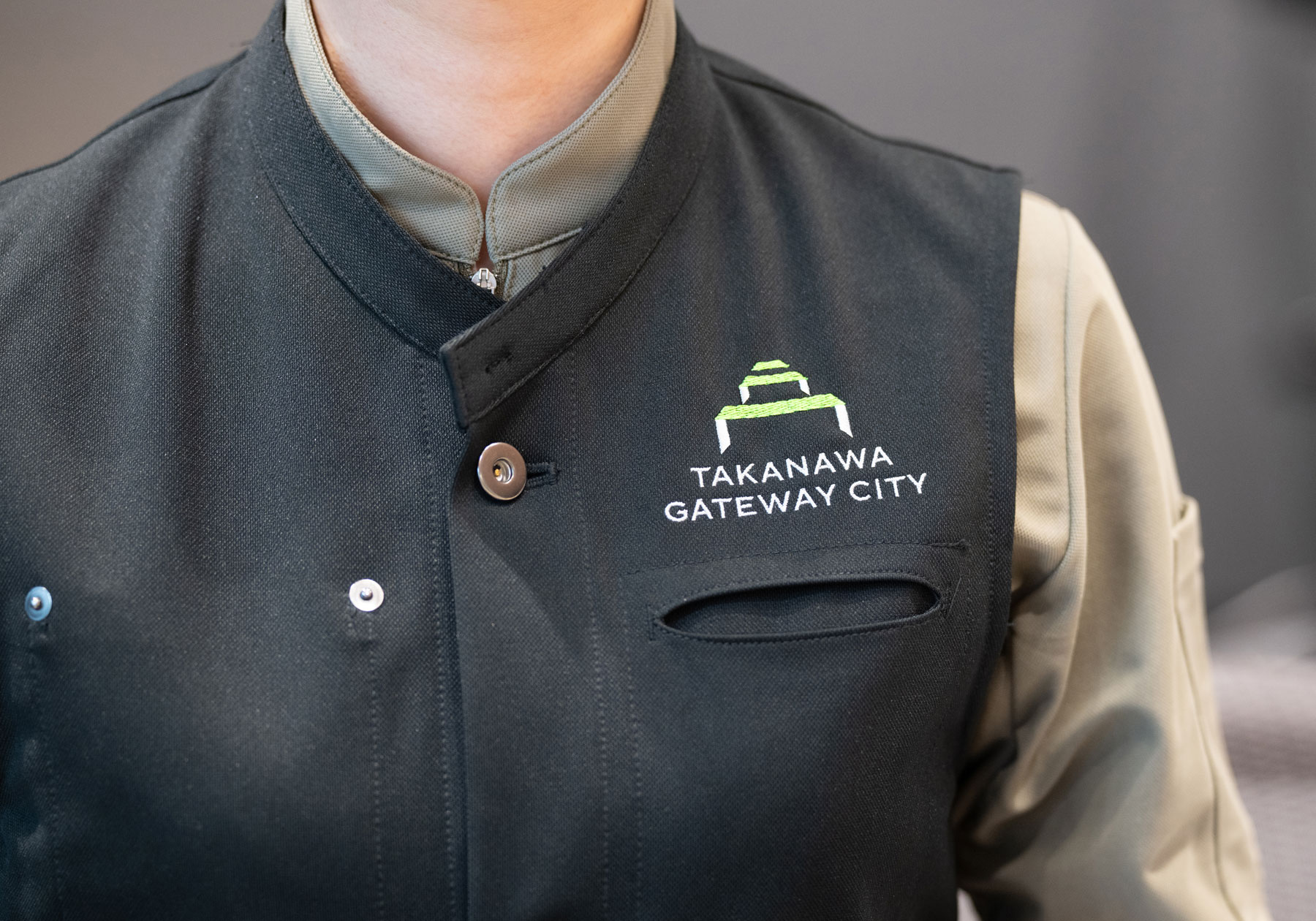 ユニフォームは、これらの行動指針の一部を体現する存在として、街のロゴとともに刺繍で表現されています。「TAKANAWA GATEWAY CITYのロゴには、『高輪』という地名と“GATEWAY(玄関口)”という都市の役割が重ねられています。ロゴ内では『高輪』の“高”の文字を『GATE(門)』に見立てており、江戸時代に高輪が“江戸の玄関口”だった歴史性と、東京と世界をつなぐ「玄関口」を目指す思いが込められております。