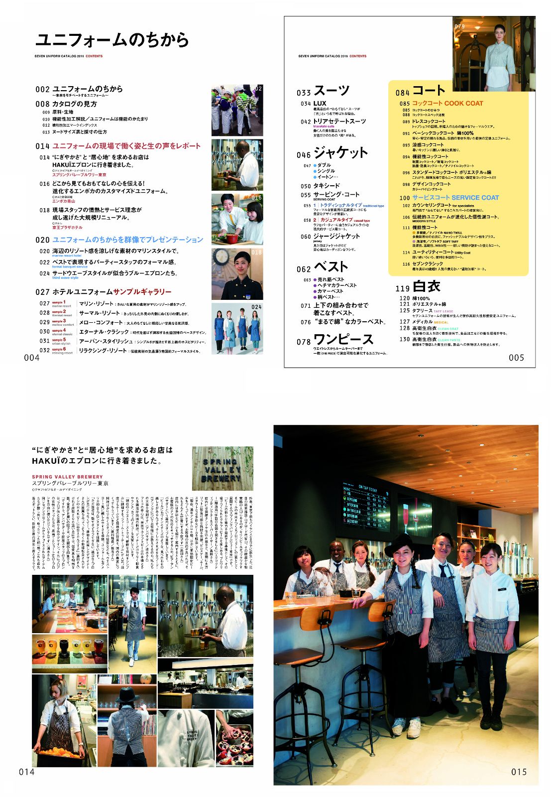 ホテル、レストランをはじめとする飲食・サービス業界で働く皆様を、美しく働きやすい制服によってサポートする、サービスユニフォームのリーディングカンパニー「(株)セブンユニフォーム」。弊社のバラエティー豊かな商品をまとめた総合カタログの最新版「SEVEN CATLOG 2016」が、このたび完成しました。