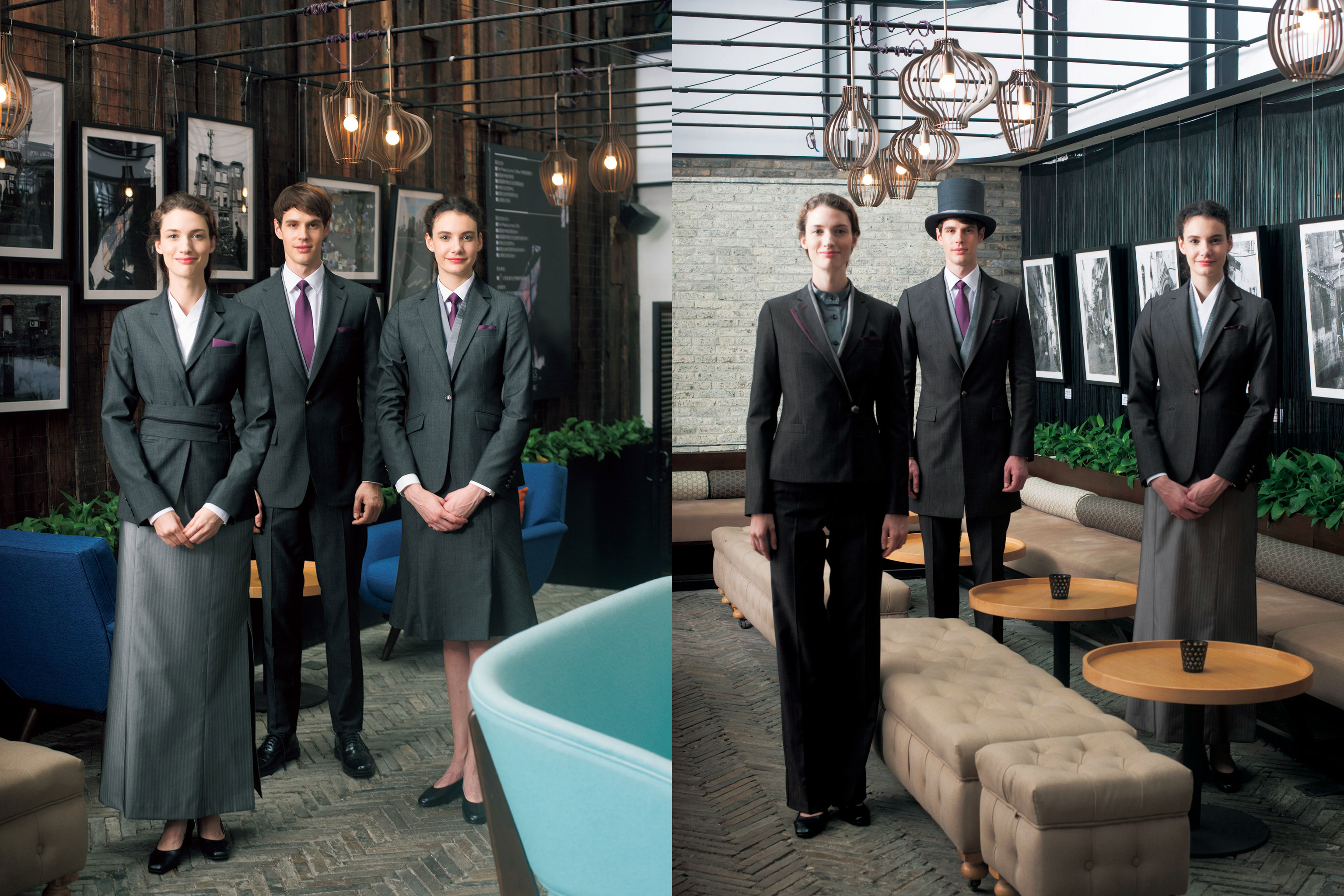 サービスユニフォームメーカー「SEVEN UNIFORM / セブンユニフォーム」は、見る人に着用者の所属や担当、その場所の雰囲気、働く人の意欲や心意気など、多彩な情報を伝えるツールであり、着用者どうしの連帯感を高める手段でもある “ユニフォーム” 本来の意義を見つめ直し、コミュニケーション力を重視した新たな商品を多数制作。ホテレスの弊社ブース「1-Y09」では、時代のニーズに応えた2017年の新商品を中心に、飲食・サービス業の現場での様々な場面をイメージしたコーディネートの展示、また、新しいユニフォームの提案スタイルをご覧いただける空間をご用意しました。外国人観光客の増加などから近年ニーズが高まっているホテルユニフォームは、多様化するホテルスタイルやデザインコンセプトから、個性的でありながら洗練された新しいスタッフユニフォームのイメージが求められています。多くの有名ホテルへの納品実績が有るセブンユニフォームでは、オーダーメイドのホテルユニフォームのデザイン製作を承っております。ホテレス会場ではサンプルとして、ホテルのタイプに合わせたドア・ベル・フロント・ルームキーパーなど各役職スタッフのユニフォームのアンサンブルを群像でご紹介しています。