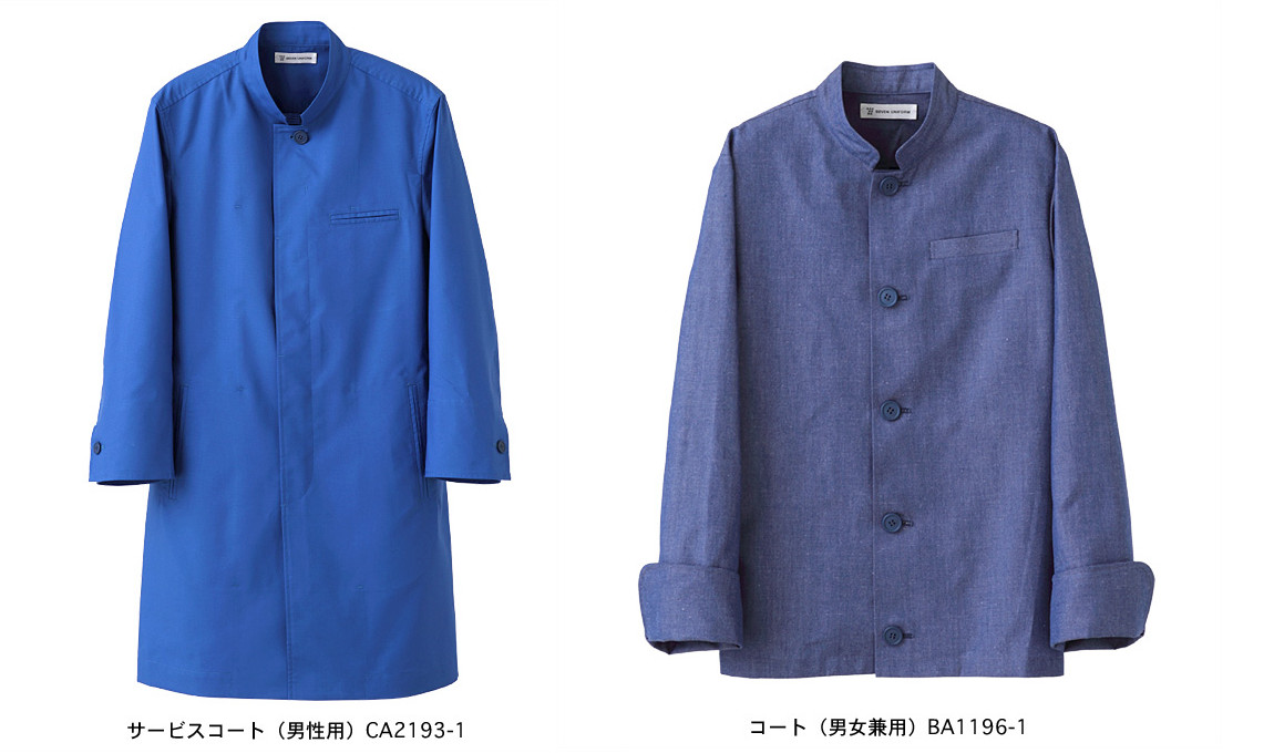 このコーディネート企画では弊社の製品、「サービスコート(CA2193-1)」と「コート(BA1196-1)」が利用されています。