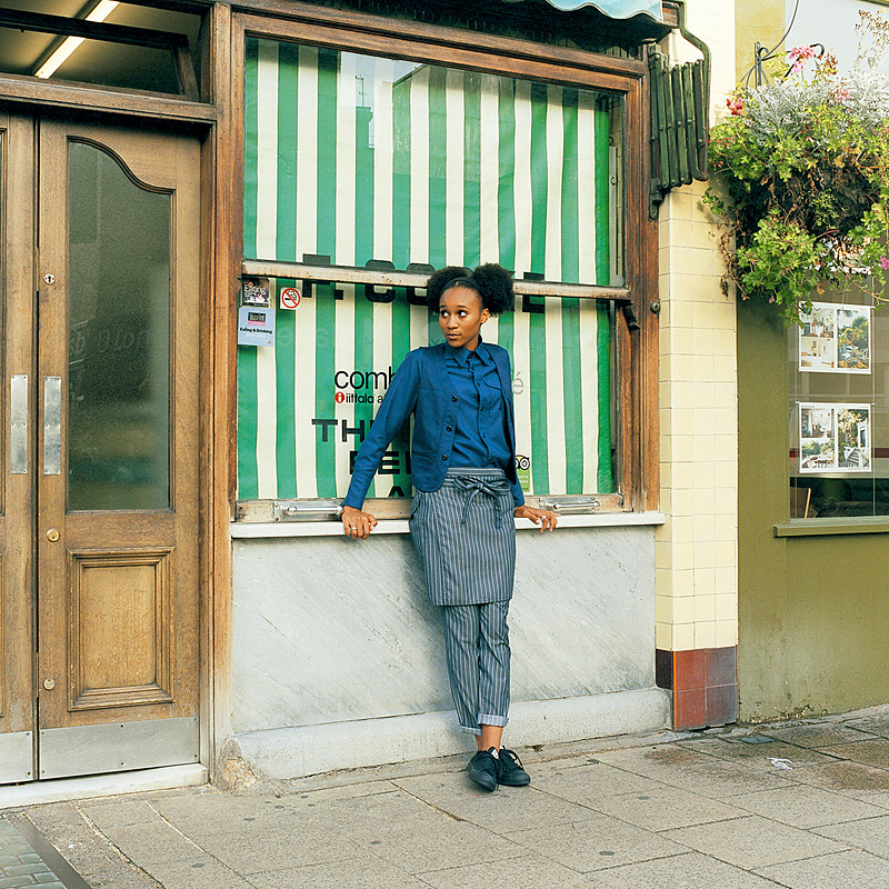 P88からの特集「忽那汐里 × HAKUÏ で実験! ワークとビンテージのおしゃれ方程式」では、小野塚秋良さんデザインのセブンユニフォームブランド「HAKUÏ」に、ビンテージを組み合わせたスタイリングを提案。