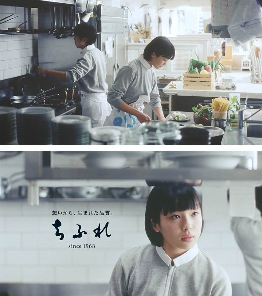 ちふれ化粧品のテレビCM「美白うるおいジェル/使命篇」に、セブンユニフォームブランド「HAKUÏ(ハクイ)」の「裏毛ブルゾン(RE6759-8)」、「ミドルエプロン(RT6904-0)」が登場。