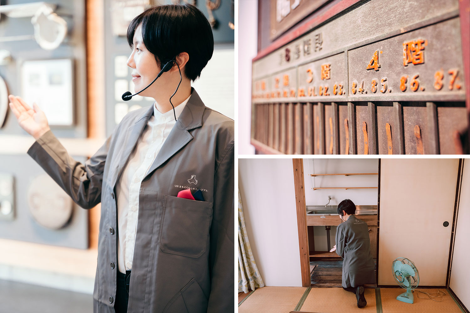 以前、八王子にあった「集合住宅歴史館」時代、スタッフは事務服のような堅い雰囲気のユニフォームだったそうです。今回のユニフォームについて検討と対話を重ねる中で、施設コンセプトである「過去、現在、未来 新しいくらし方を探求する」に合わせた、キュレータースタイルにたどり着きました。
