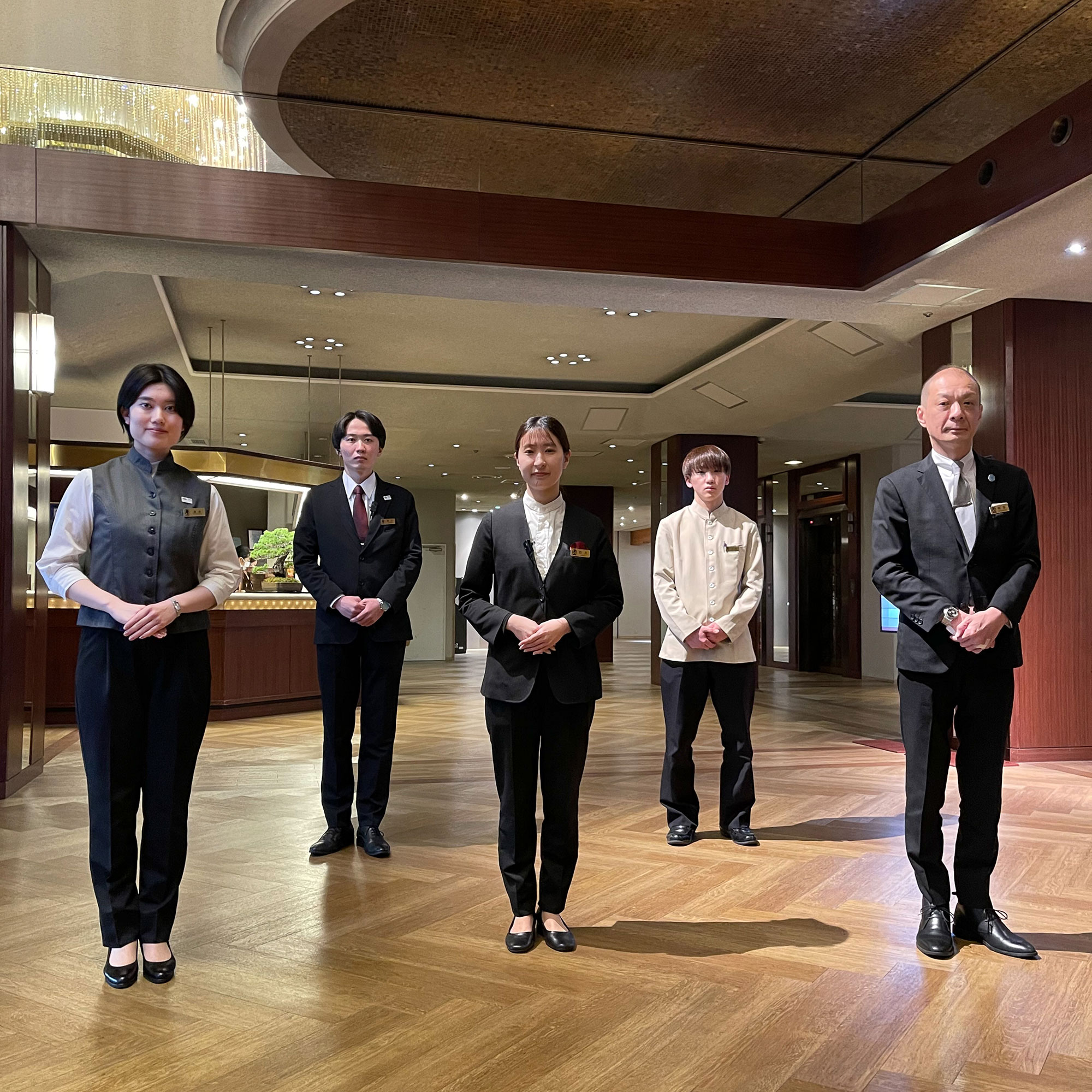 トリコットとは、経編(たてあみ)の一種で、ストレッチ性や形状安定性、通気性に優れた生地のため、スポーツやメディカルウェアに多く使用されます。この機能により、スタッフは動きやすく長時間の立ち仕事でも快適に過ごせます。またシワになりにくく、常にしっかりした外見を保てるので、シティホテルとしてのプロフェッショナルなイメージを維持できます。梳毛(そもう)スーツが一般的で最もホスピタリティが高いとされていますが、トリコットスーツはポリエステル素材特有の光沢を消しているため、梳毛スーツのような華やかさを感じさせます。