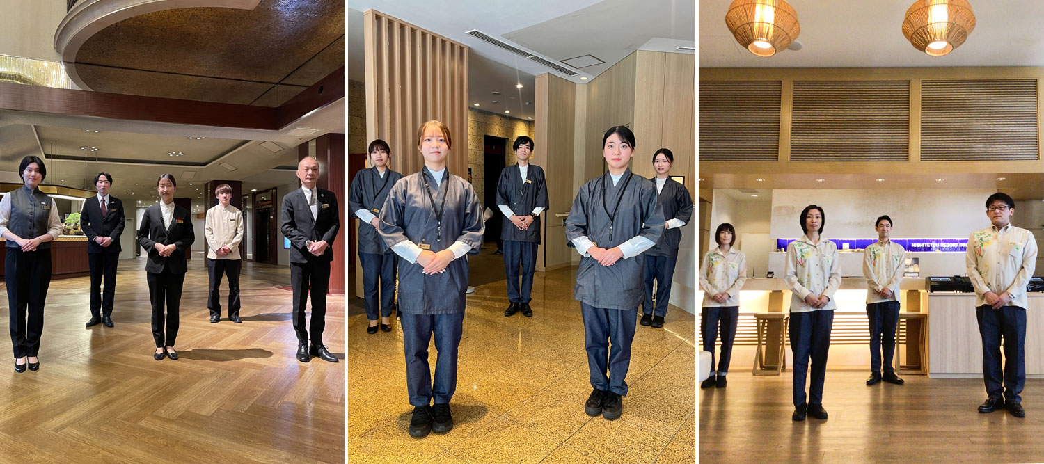 西鉄リゾートイン別府は「リラックスと癒し」をテーマにしており、天然温泉を活用した大浴場や露天風呂でのんびりと過ごすことができるため、地域特性に合わせた作務衣スタイルのオリジナルユニフォームを導入しました。