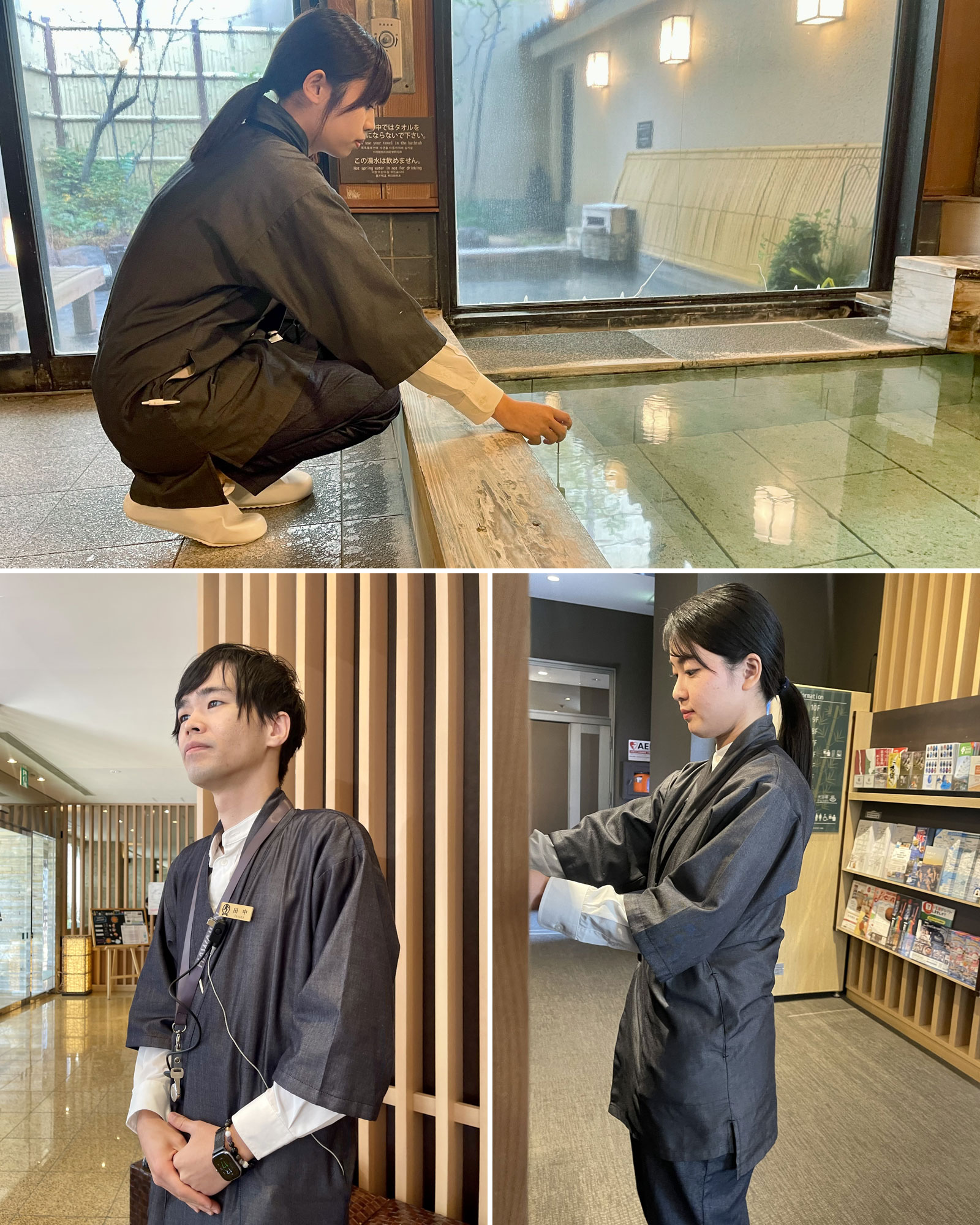 「立ったり座ったりの動作がスムーズになりました。作務衣は温泉街らしさが感じられ、海外からのお客様にも好評です。」(女性スタッフ)