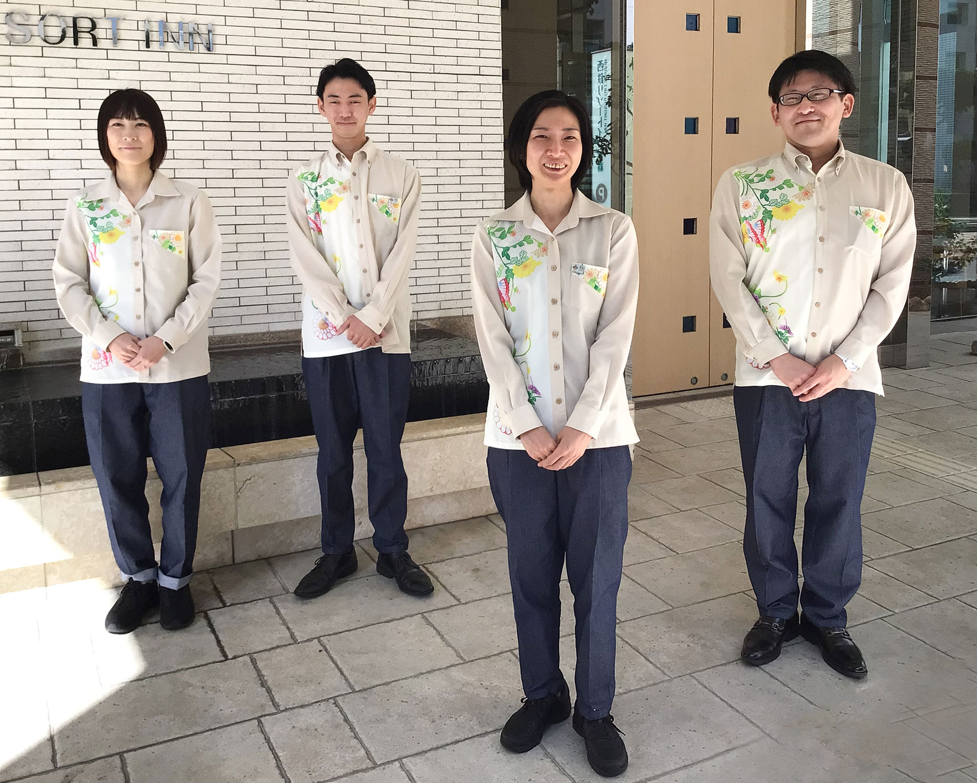 「かりゆしシャツと共通ユニフォームのパンツを合わせることで、ホテルグループとしての統一感をもたせつつ、沖縄らしい地域性が表現できました。」(西鉄ホテルズ 宿泊運営部主任/木下様)