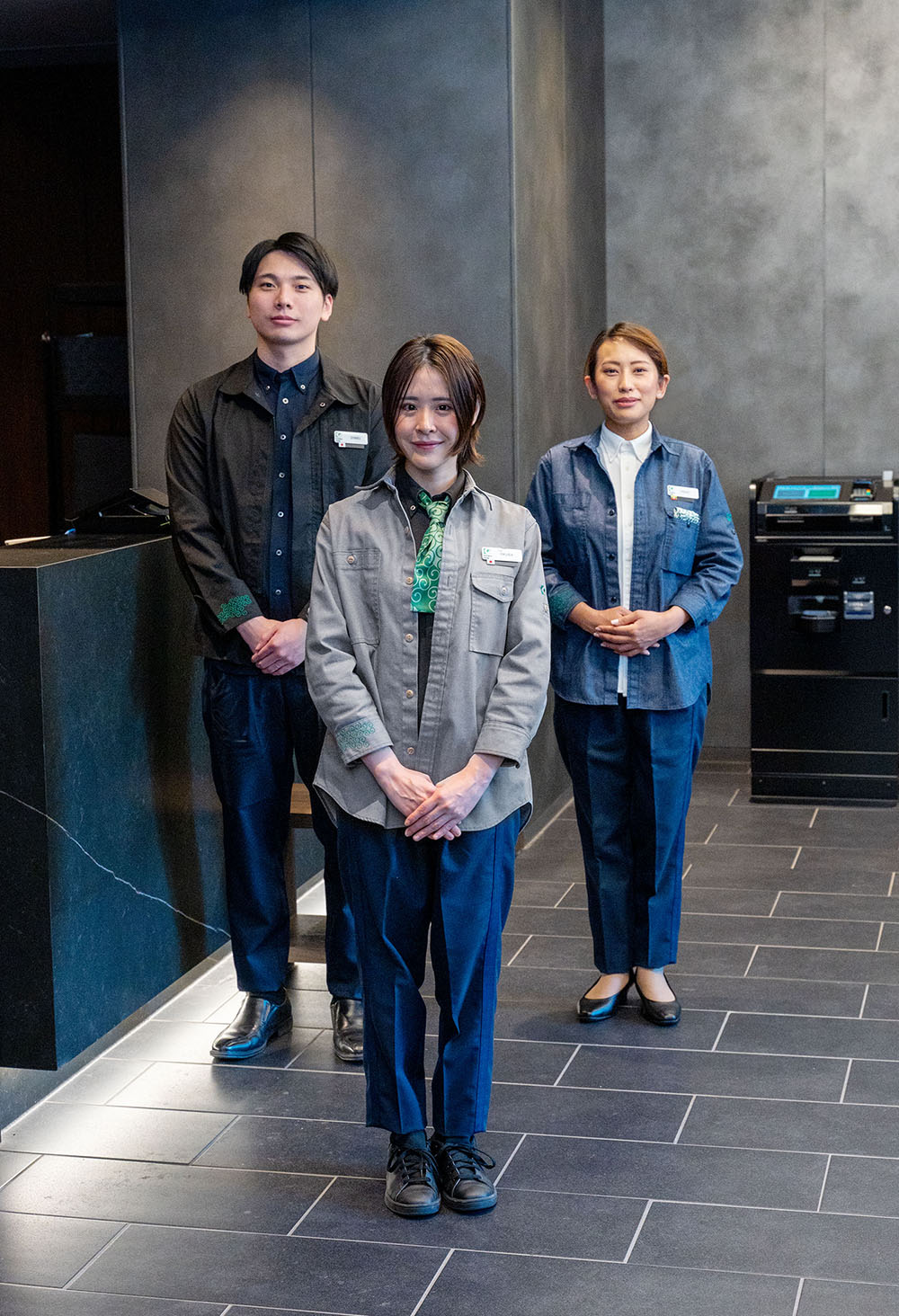 「リニューアルしてからも常連客の方々は変わらず来てくれますが、新しい客層も増えています。女性客も増えていて、客単価も少し上がりました。同時に変えたユニフォームもとても気に入っています」と話してくださるのはフロア担当の浜富夫さん。リニューアル時にこちらがご提案させていただいたのは、日本らしさやラーメン屋さんを単純に演出するのではなく、内装にも合う「パリ」のカジュアル和レストランをイメージ。HAKUIのエプロン(RT6902-9)はDIYをコンセプトに開発したデザインで、たくさんのポケットとハンマーフックなどを設けつつも、立ったりしゃがんだりの動きに対応した短い丈がとても個性的なエプロン。小さめの設計の前掛け姿は、日本の童話に出てくる金太郎のイメージとまさにピッタリで、「金太郎」さんの為に生まれたエプロンだと思ってしまう程、お店とマッチしていました。(企画部 N.I.)