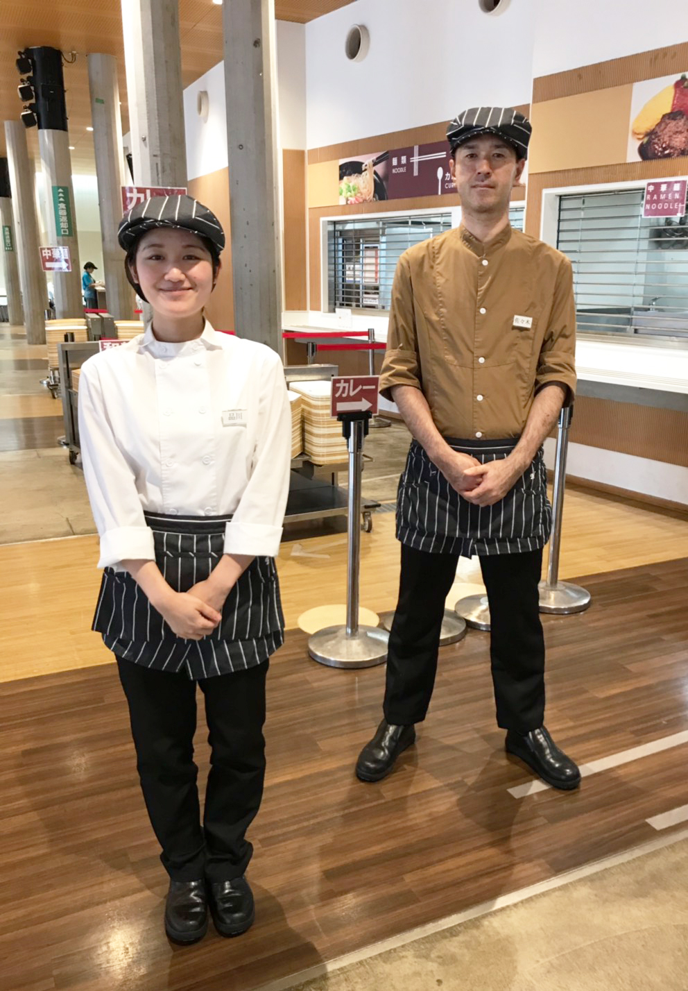 シャツにヒッコリーのエプロンという一見カフェのようなユニフォームが親しみやすさを醸し出しています。