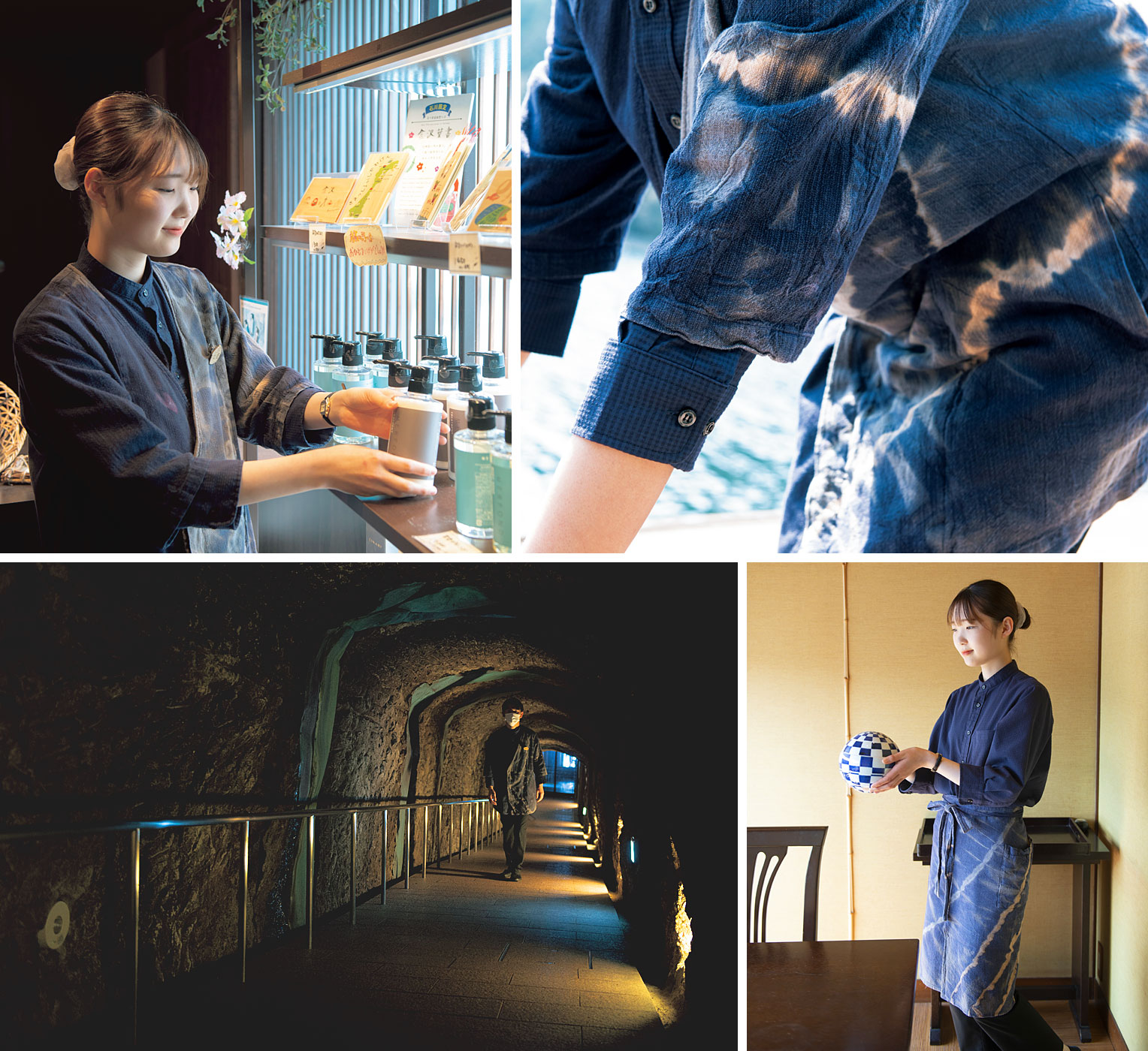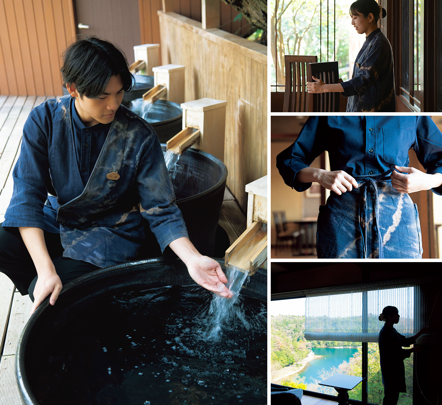 「この旅館の魅力である水墨画のような美しい景観の印象を、加工で表現できないかと考えたんです。それならすべて手作業のため、制服でありながら1点1点異なる表情を見せることができるので」(石橋)