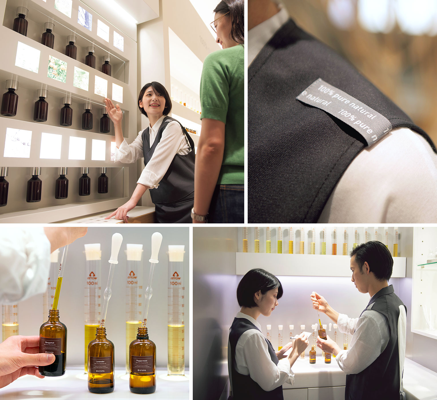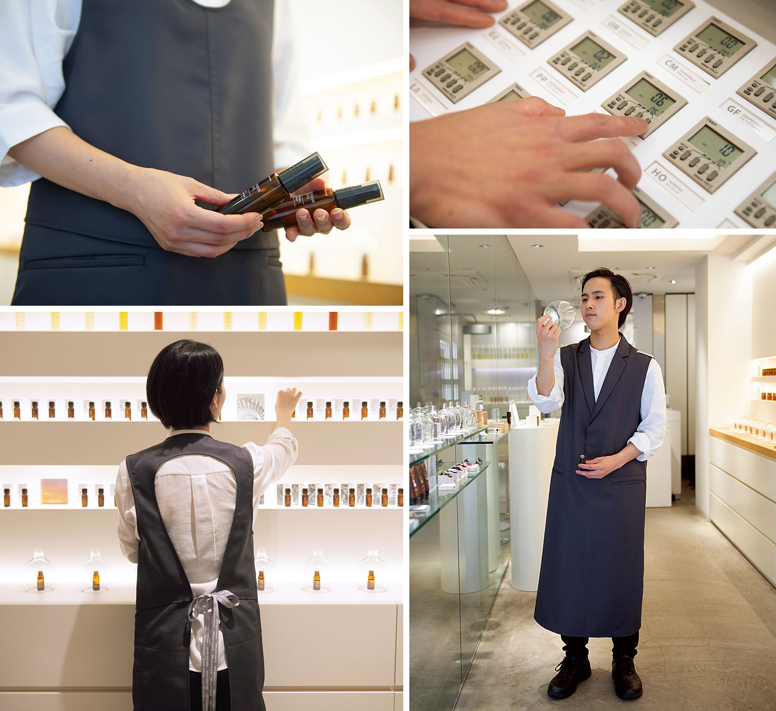 「着ていて感じるのは、素材に光沢があって高級感が感じられること。お客様をお迎えする時も一枚羽織っているだけで、香りの専門家なんだ!という自信が湧いてくるようです」(渋谷店・店長/守屋さん)
