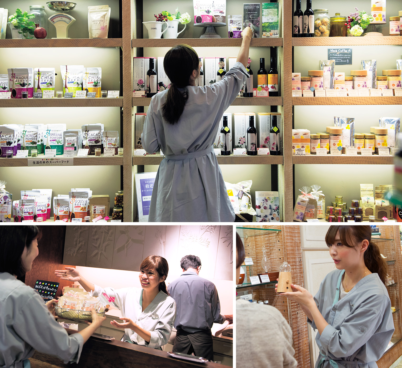 「以前はコスメ関連の商品が多く、制服も美容部員風でしたが、それをナチュラル、オーガニックという原点に戻したんです」(三堀さん)