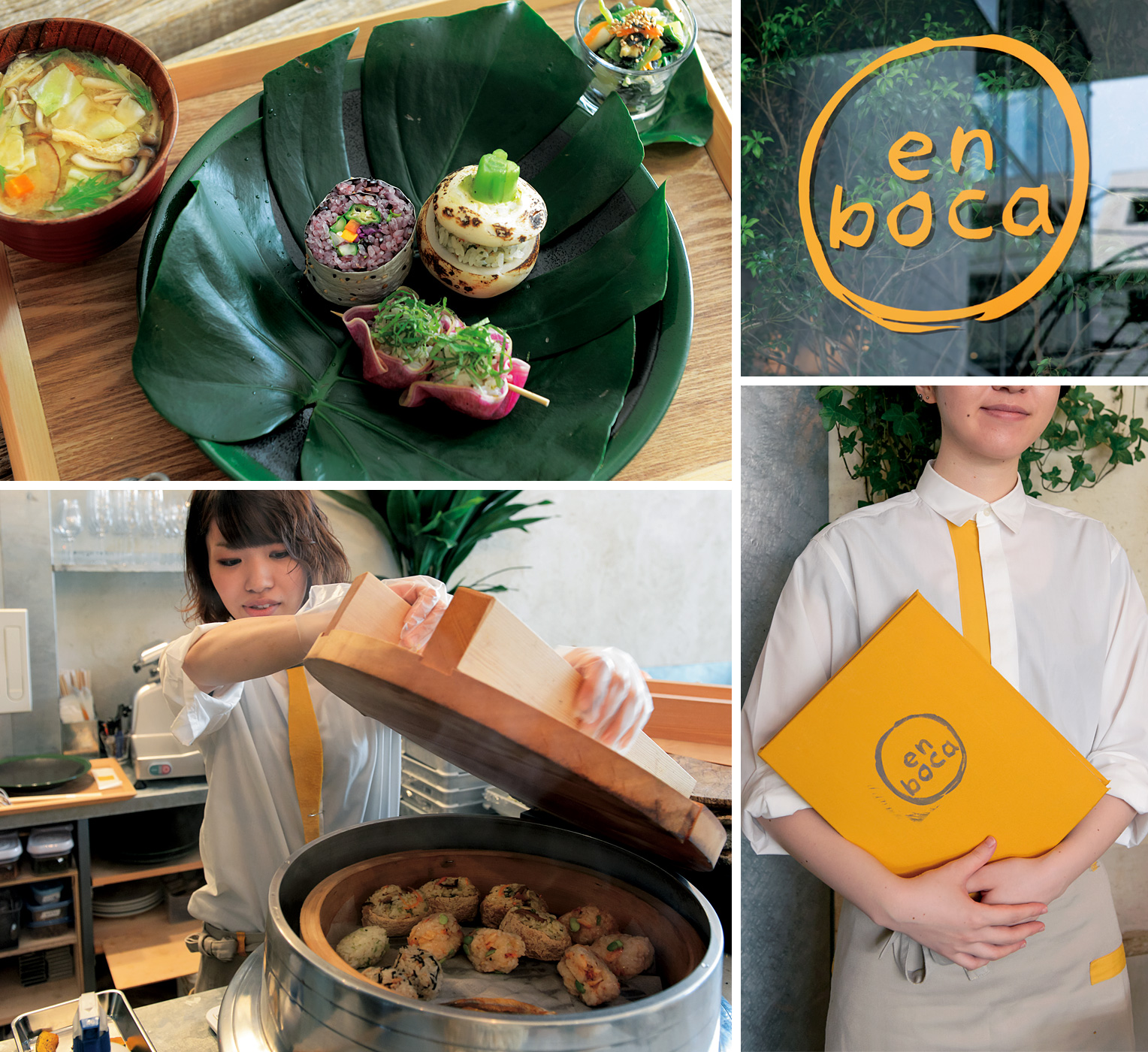 「エンボカ」はその1階で営業するカフェ。軽井沢本店のほか京都や代々木上原にもお店を開く、窯焼きピッツァが人気の有名料理店ですが、青山の店舗は“お米と野菜”をテーマとした新業態です。