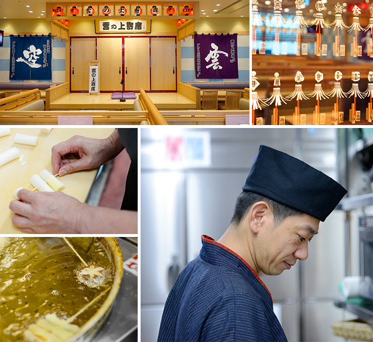 東京スカイツリータウン®のある墨田区は、芭蕉や北斎も住んだ江戸文化の中心地。東京ソラマチ®には、そんな時代の食と風俗を同時に味わえる場所があります。店内に落語の高座を設えた『そらまち亭』。