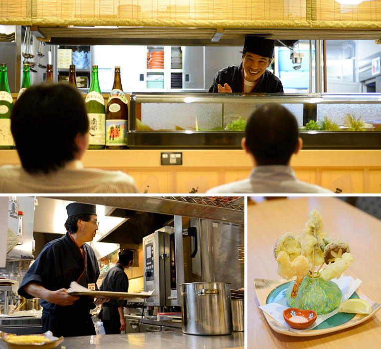 塩分が普通の味噌の約半分というヘルシーさもあって、この味噌を使った牛鍋やねぎま鍋が大人気。調理担当のスタッフさんたちは、和テイストのユニフォームに身を包んで、威勢良く働いています。