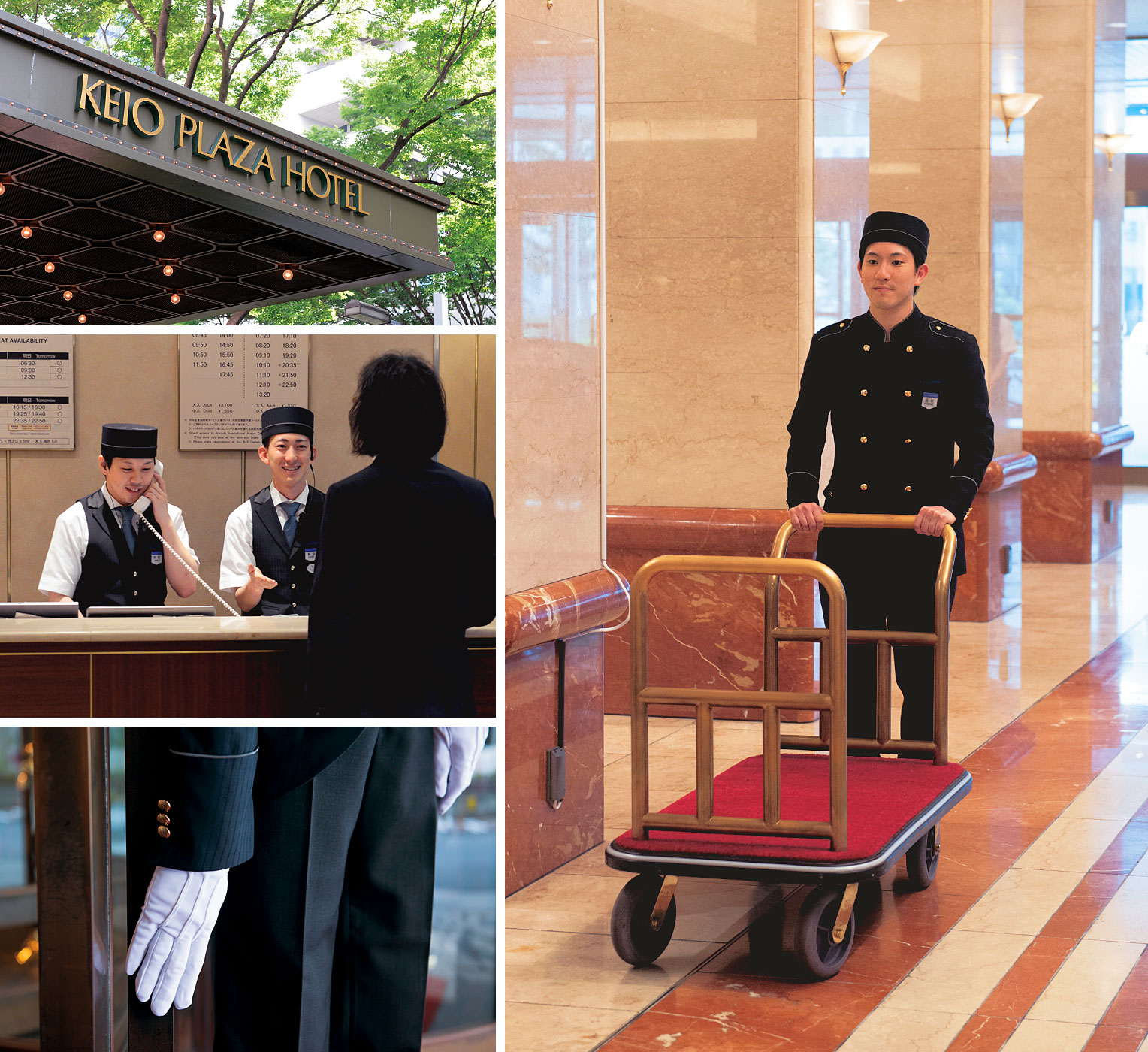 客室約1400室・従業員900名超の大型ホテルであり、今年45周年を迎えた京王プラザホテル。昨春には、宿泊部スタッフ約150名の制服が一新されました。「前回の改変はドア&ベルスタッフが2001年、フロントと客室係も10年近く前です。3部署のデザインをこの機に統一したいという思いもありました」(宿泊部/田辺副部長)