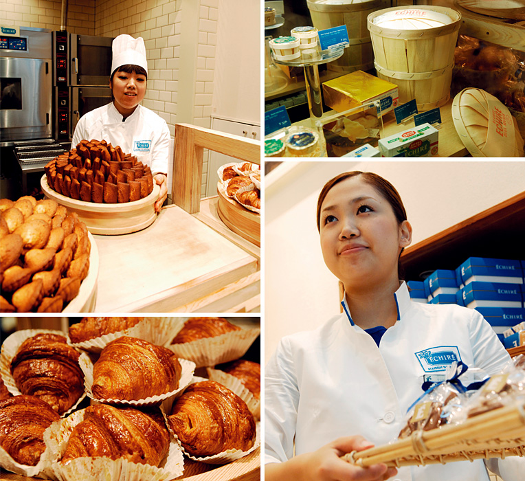 「清潔さの証しである白に、バターのラベルと同じエシレブルーをあしらうことで、まさにこのショップならではの、オリジナルなユニフォームになっていると思います」(店長)