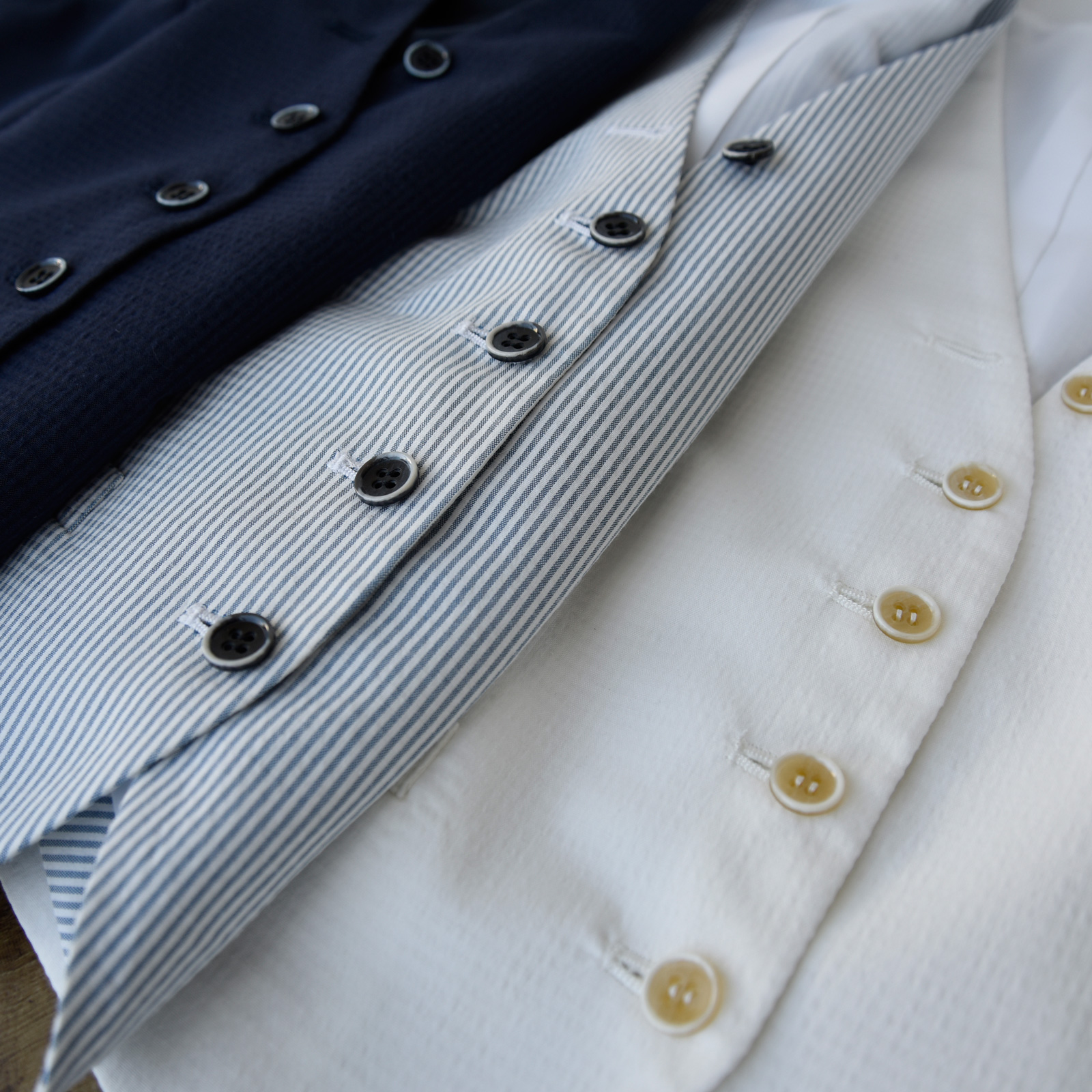 シアサッカーシリーズ ②涼しげで使いやすい「ベスト」「帽子」