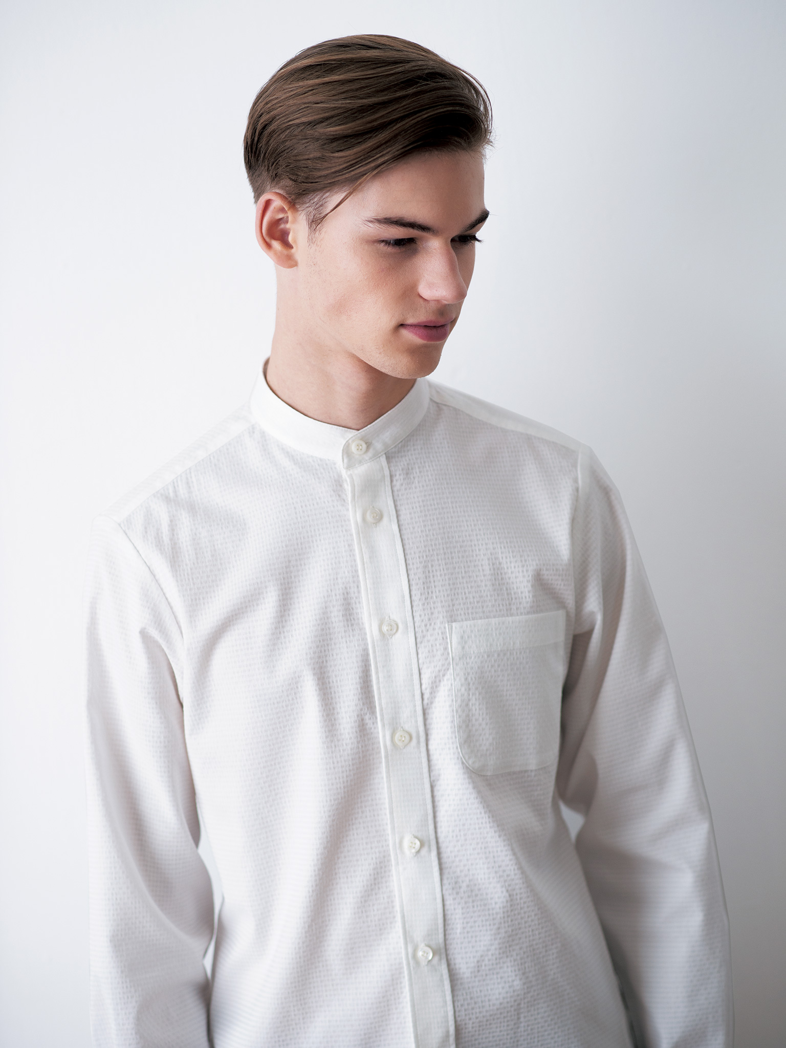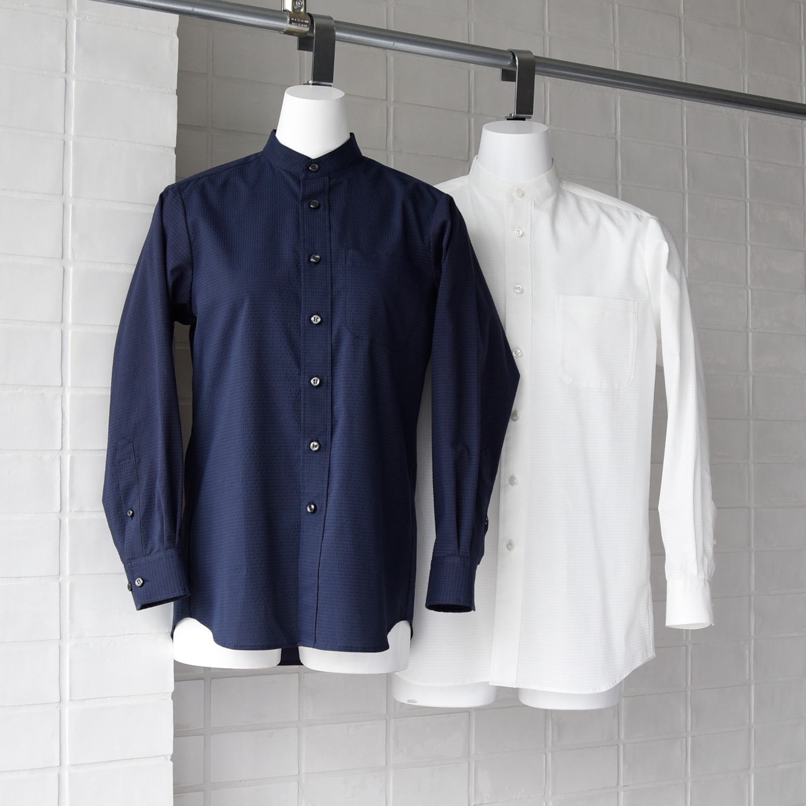 襟はボタンダウンとスタンドカラーの2種類をご用意しました。シャツの基本はレギュラーカラーですが、ボタンダウンも基本スタイルに近づいておりネクタイを締めても様になります。スタンドカラーはとくに他の襟元に比べモダンに映り、和を感じさせるデザインとしても定評があります。