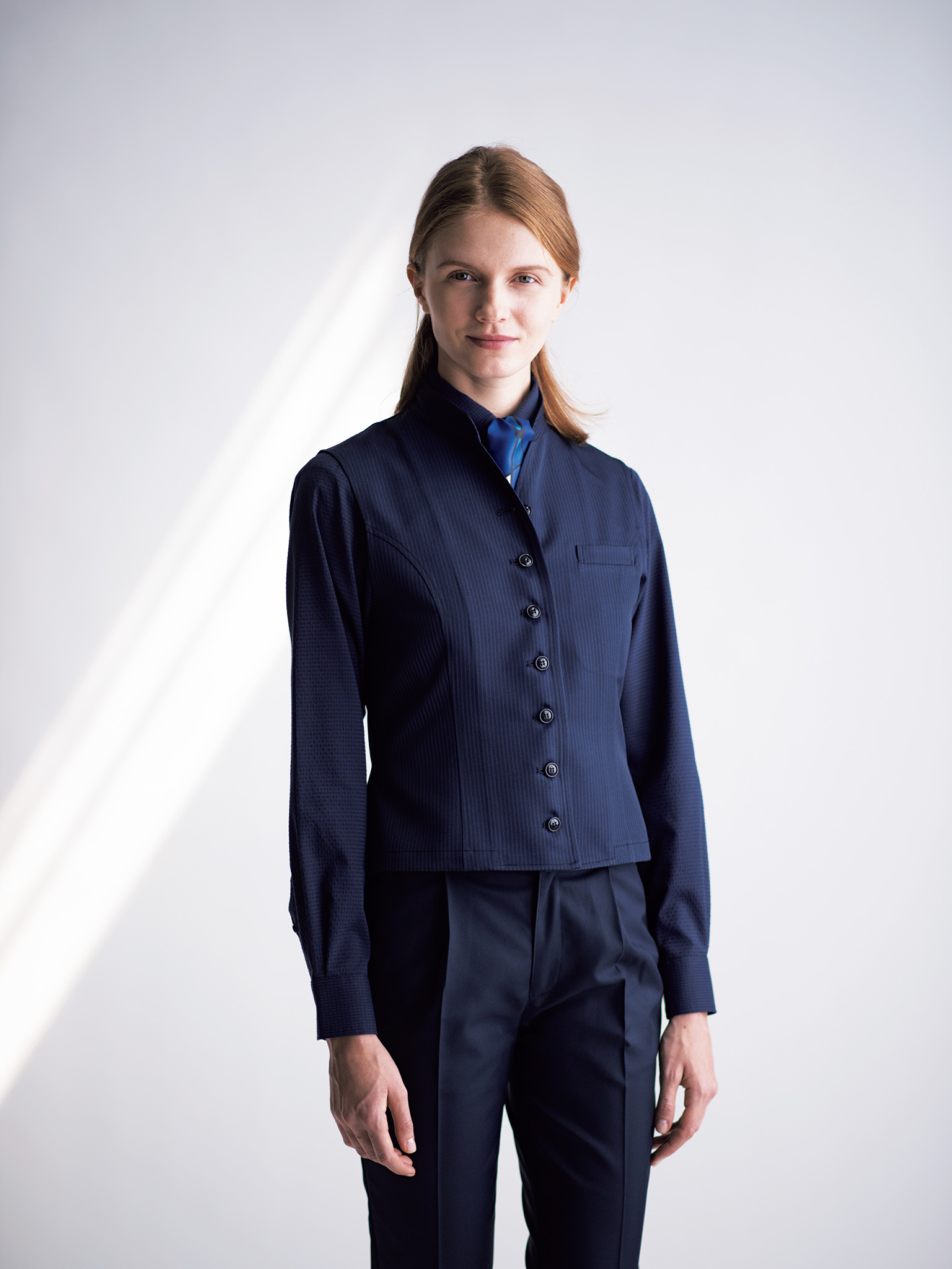 ドバイ万博の日本館アテンダント公式ユニフォームにもスタンドカラーが取り入れられています。