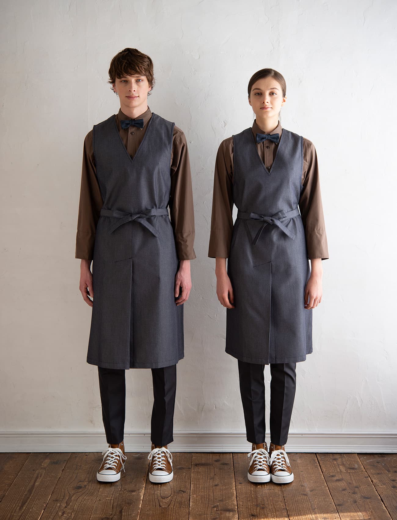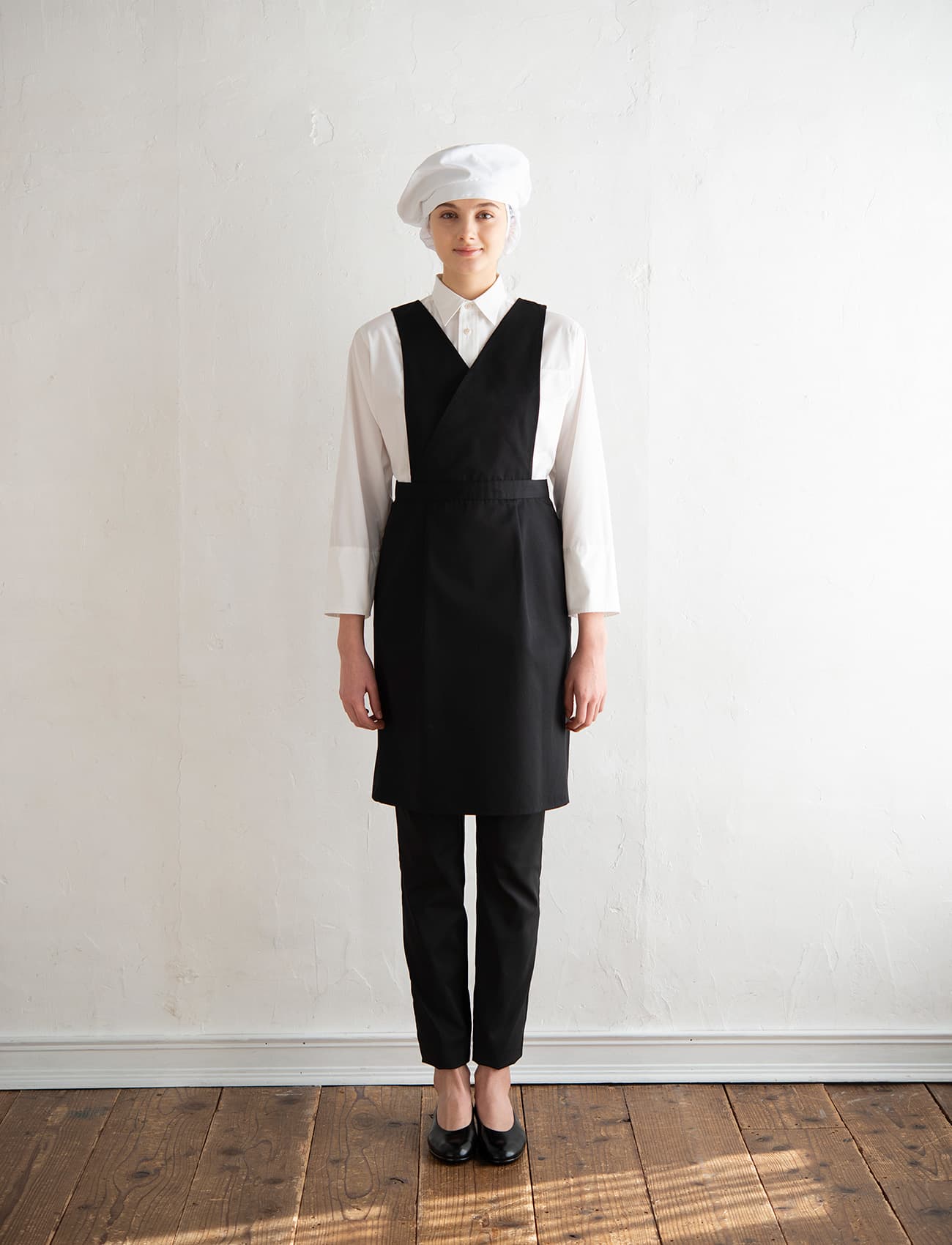 衛生ユニフォームでありながら、今までにないリラックス感とホスピタリティを表現できるため、バランスを難しく考えることなく、幅広くコーディネートすることが出来ます。コスメ販売やショコラティエ、BOOKショップやクリーンスタッフに至るまで、シーンを選びません。