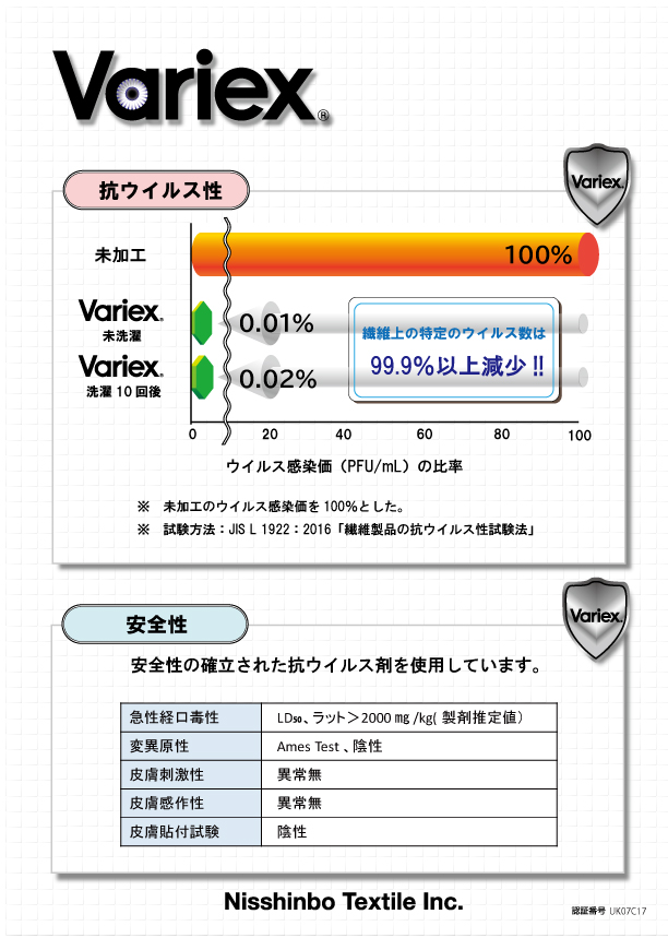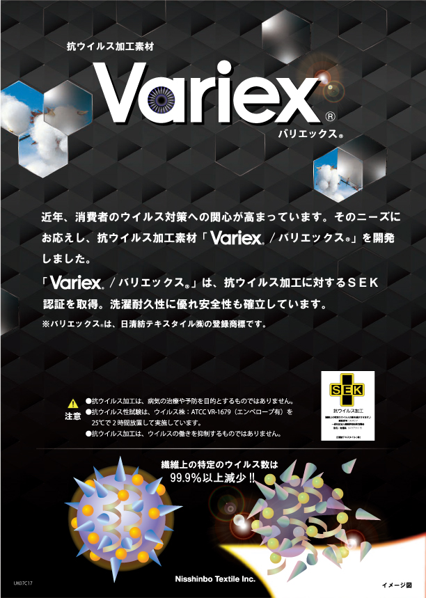 ※2:Variex®(バリエックス)は日清紡テキスタイル㈱の登録商標です。