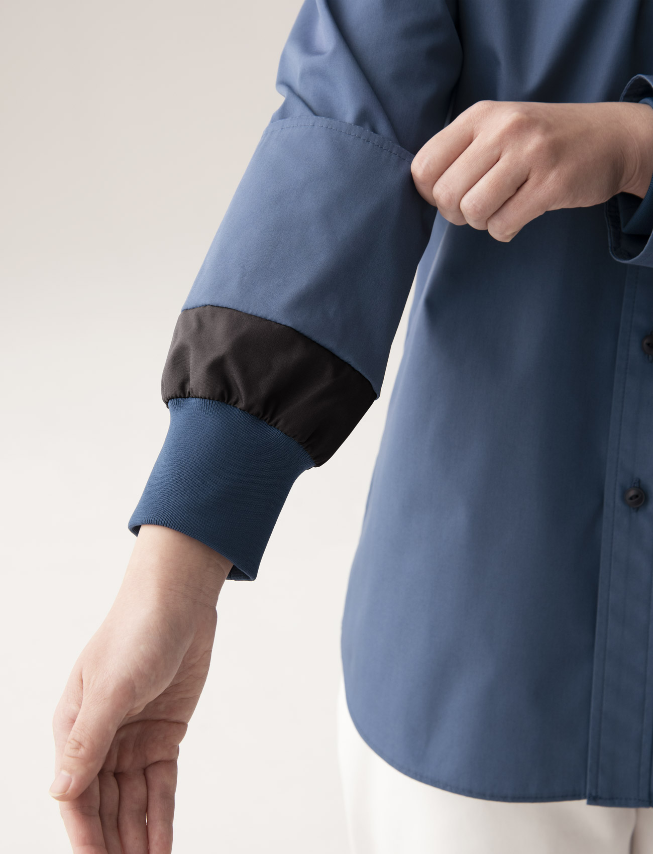 外側の袖を折り上げて、アンダーカバーを見せた状態。リブ内蔵によって、腕まくりをする際もしっかりと固定されます。
