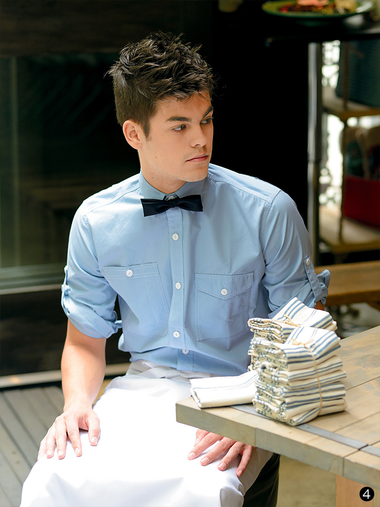 新商品「カジュアル・シャツ 長袖(CH4434)」と「カジュアル・シャツ 半袖(CH4437)」は、普段着のようなラフ感と、仕事着に必要な機能・耐久性を併せ持つ、新しいユニフォームシャツ。シンプルかつベーシックで美しいシルエットは、さまざまなアイテムと組み合わせ、個性的なコーディネートが可能です。左右異なる形の胸ポケットが特徴で、右胸にはペン差しを備えたボタン付きポケット、左胸にはフラップ付きのポケットがあり機能的です。長袖シャツ(CH4434)は袖丈調節タブにより半袖としての使用も可能。ポリエステルの芯をコットンでカバーリングした二重構造糸による特殊生地はシワになりにくく、耐久性・速乾性に優れつつも綿の自然な風合いを表現。吸汗性にも優れ、着心地も快適です。色はそれぞれ、オフホワイト(-0)、サックス(-1)、イエロー(-5)の3色をご用意しています。