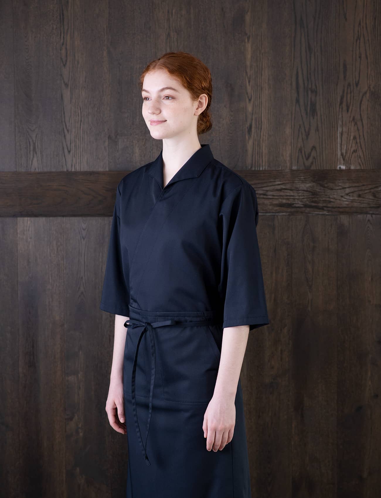 昨今増える、和モダンや古民家改装などの新店舗。和の要素を根底に持ち、様々に融合するモダンなコンセプトのお店には、今までの常識であった「和=作務衣」という考えではカバー出来なくなってきました。新しいニーズに応えるべく、使い方によっては和にも洋にも汎用できる「新たな和装シリーズ」を開発しました。