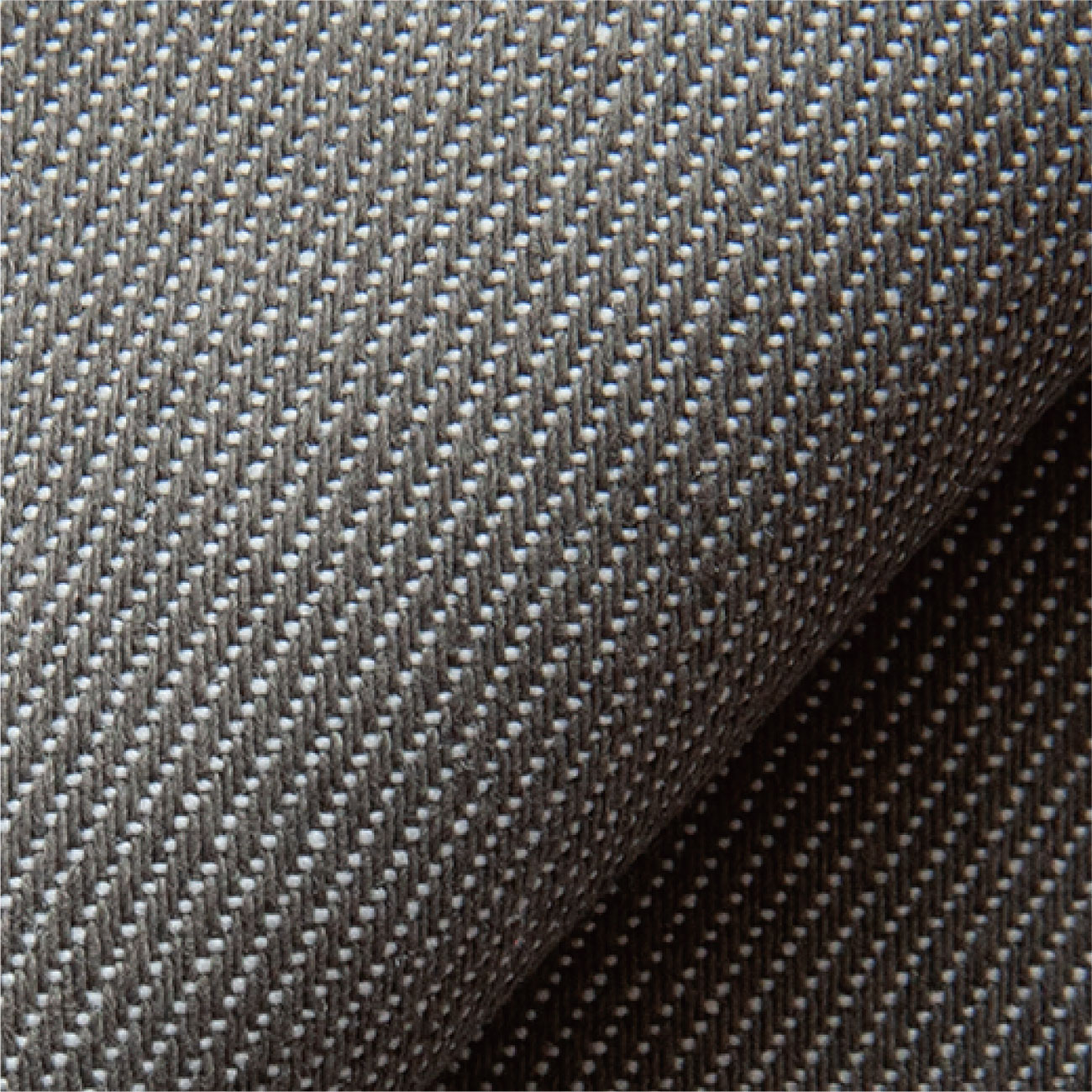 麻調の風合いにより、肌離れが良く、見る人にも涼しげかつリッチな印象を与える麻調デニム。