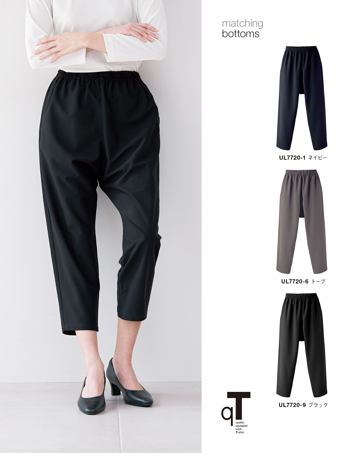 ユニフォームクオリティで最良の着心地と機能性を備えた、新しいTシャツシリーズ「qT/quality-equipped work T-shirt」に合わせるトリコットパンツも揃えました。Tシャツと同じく、程よくハリのある生地である布帛ツイル調のトリコット生地を使用し、ホスピタリティを保ちながらリラックスした着心地と動きやすさを目指しました。Tシャツと合わせやすい、3色の落ち着きのあるナチュラルな色展開です。