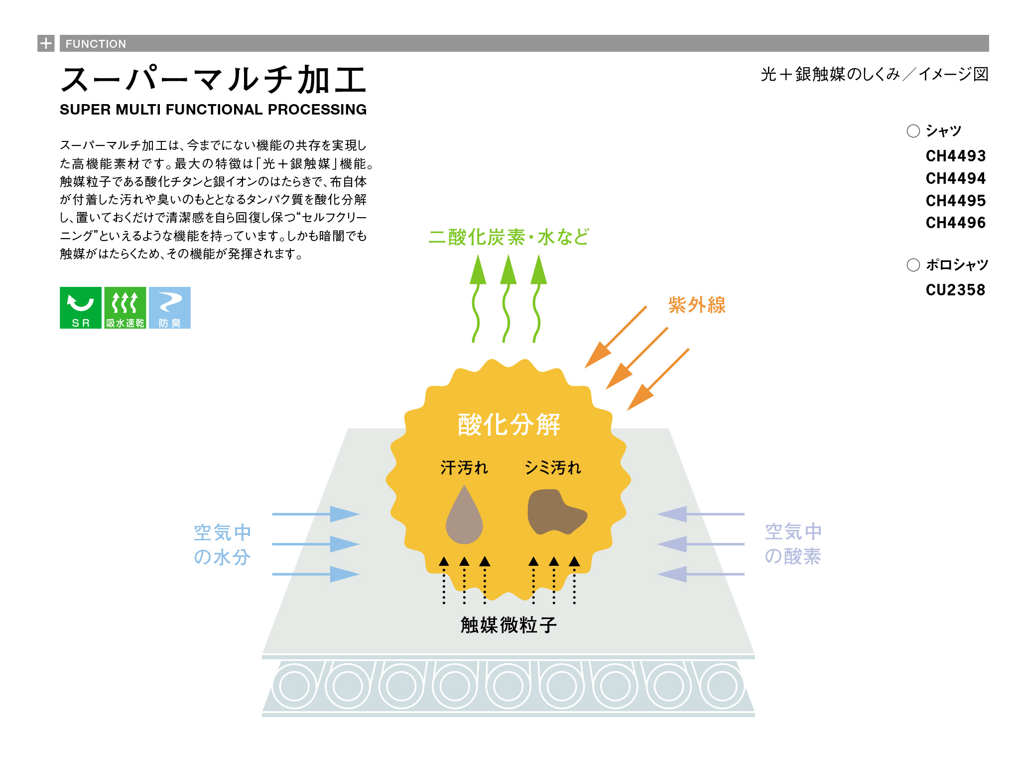 汗を吸い即乾燥、衣類を清潔に保つ多くの機能。スーパーマルチ加工を施した「超多機能ニットシャツ」